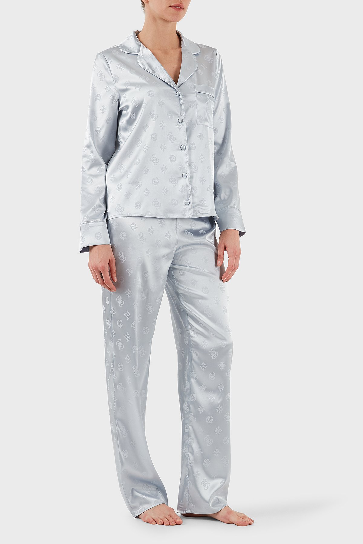 Sylvie Tamamı 4G Logolu Regular Fit Uzun Kollu O5BX05W4732 Bayan Pijama Takımı O5BX05 W4732 FBCW GRİ