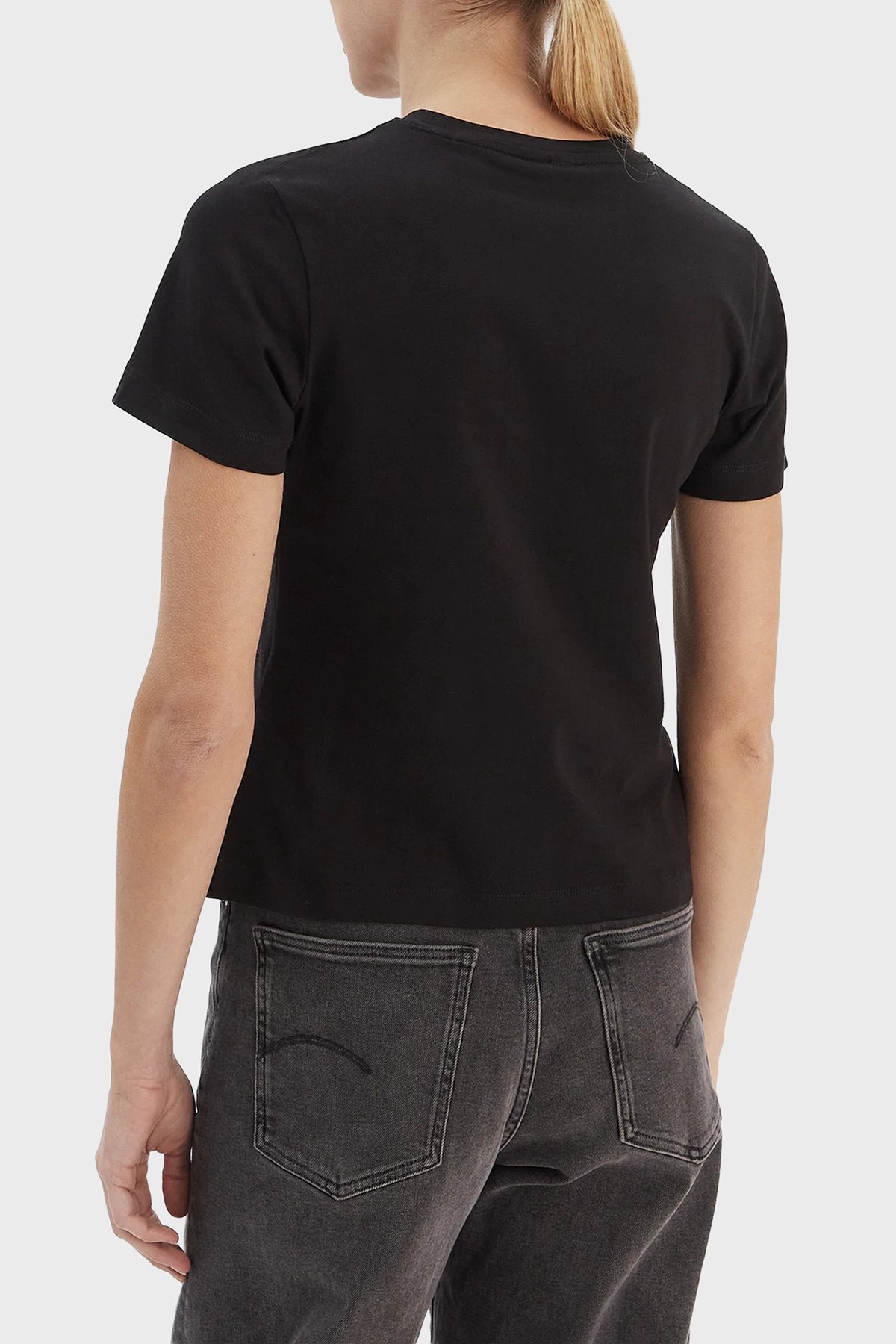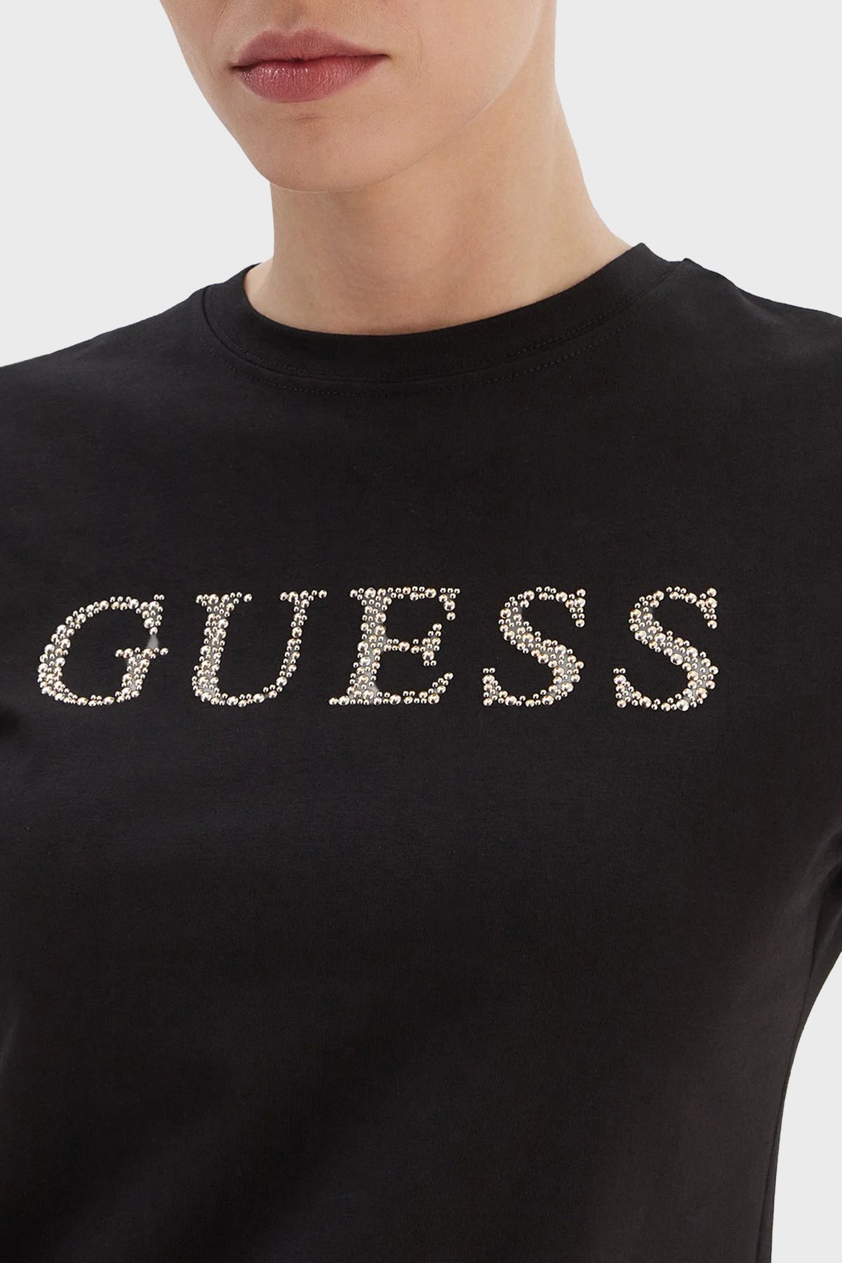 Taşlı Logolu Pamuklu Slim Fit Bisiklet Yaka V6RI20J1314 Bayan T Shirt V6RI20 J1314 JBLK SİYAH