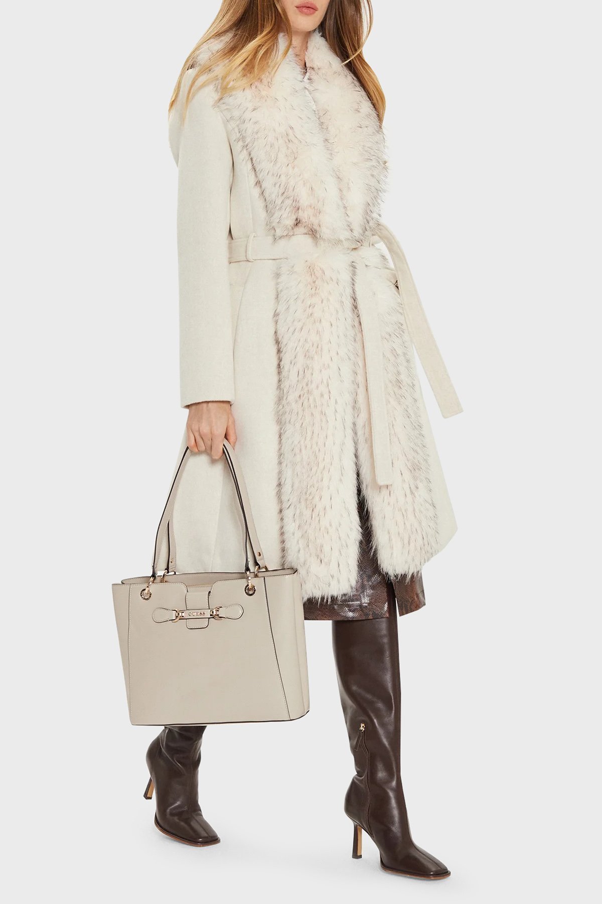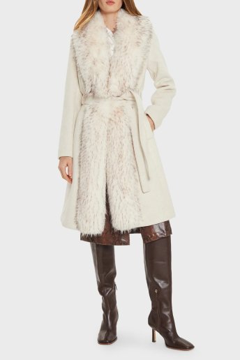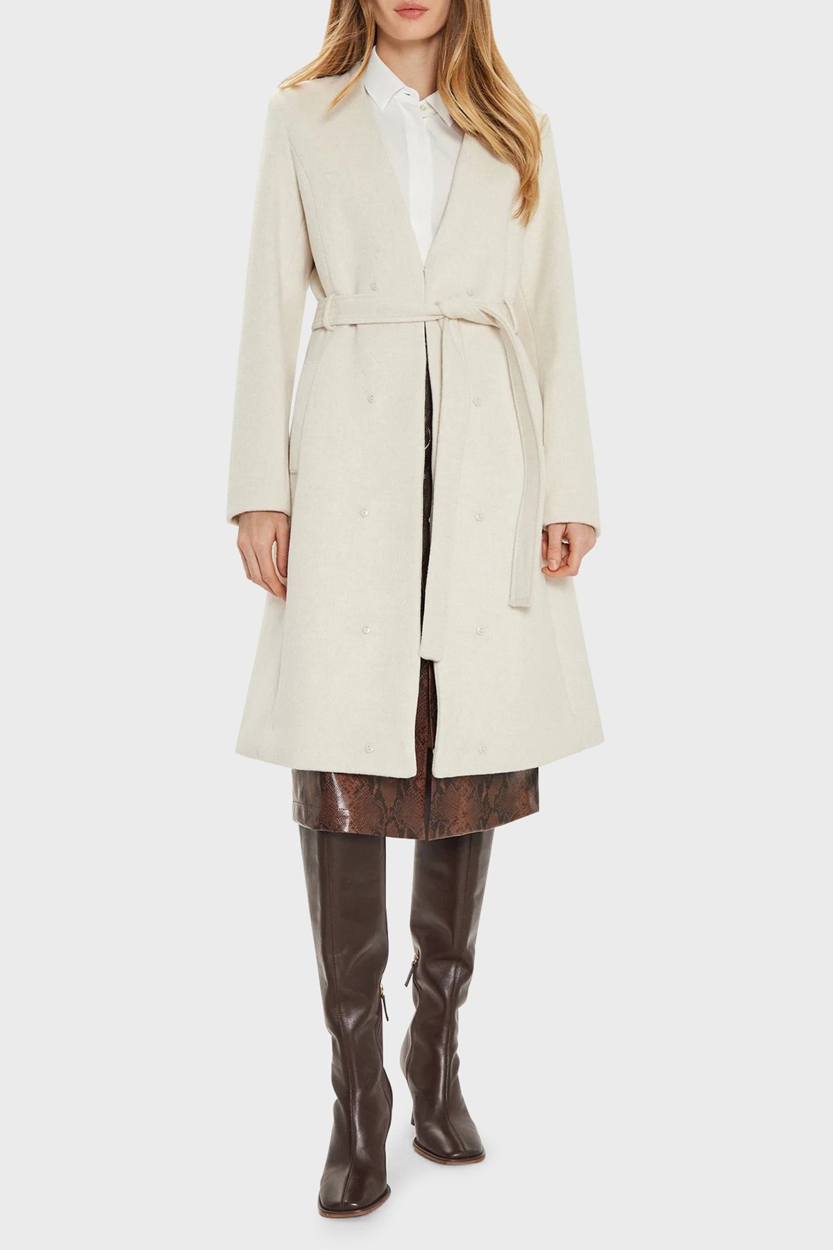 Valerie Yün Karışımlı Regular Fit Çıkarılabilir Yakalı 4BGL099957Z Bayan Kaban 4BGL09 9957Z F0DD EKRU