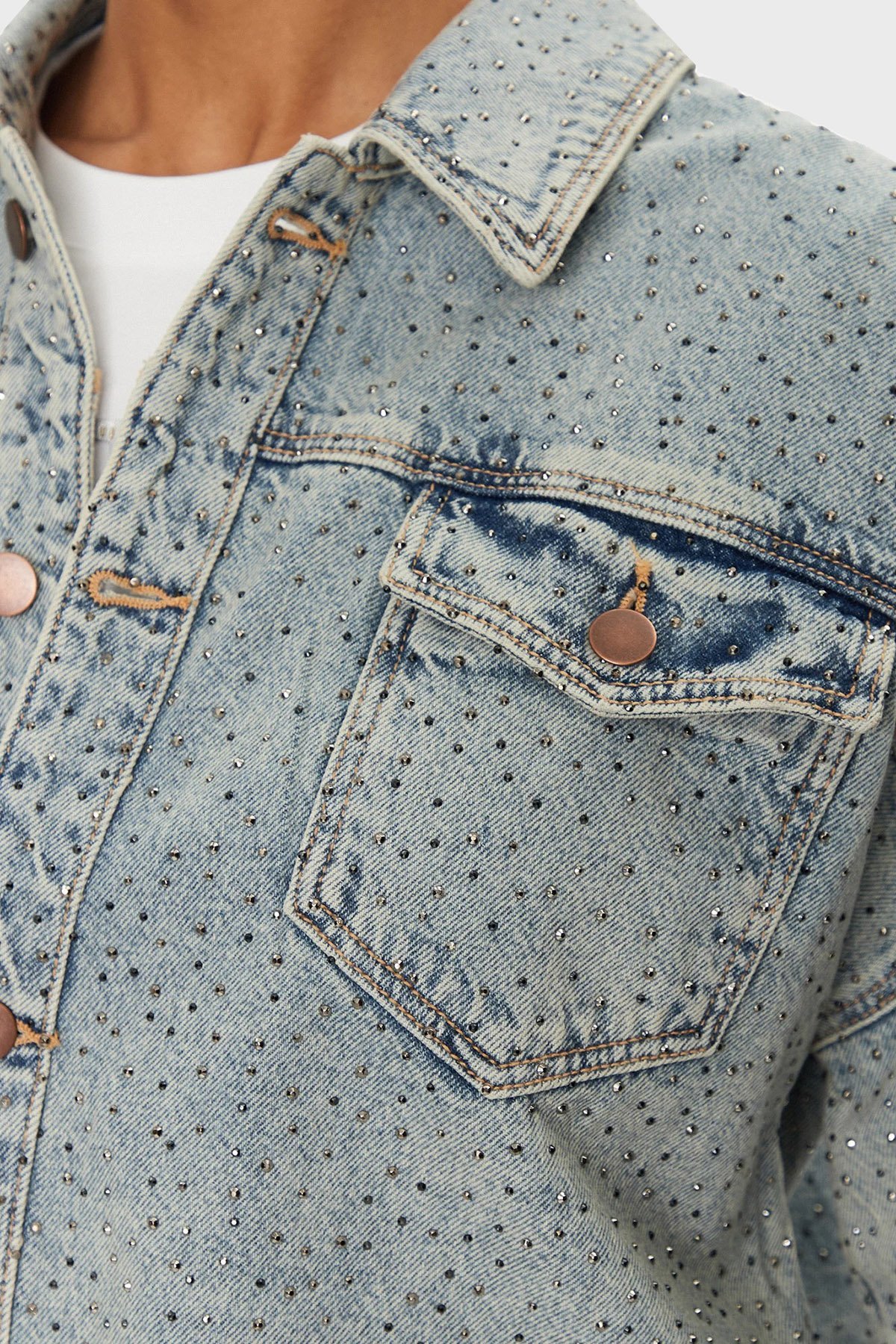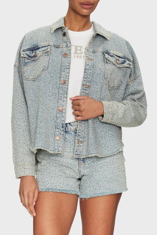 Western % 100 Pamuk Regular Fit Taşlı W5GN90D5LQ2 Bayan Kot Ceket W5GN90 D5LQ2 GRBG AÇIK MAVİ