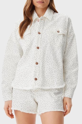Western % 100 Pamuk Regular Fit Taşlı W5GN90D5N91 Bayan Kot Ceket W5GN90 D5N91 GWBL BEYAZ