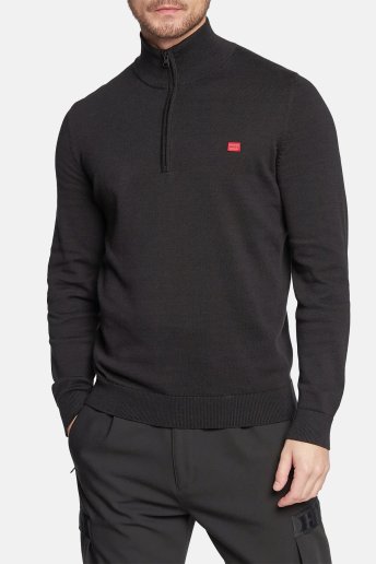 % 100 Organik Pamuk Fermuarlı Yaka Logolu Regular Fit Erkek Kazak 50474164 001 SİYAH