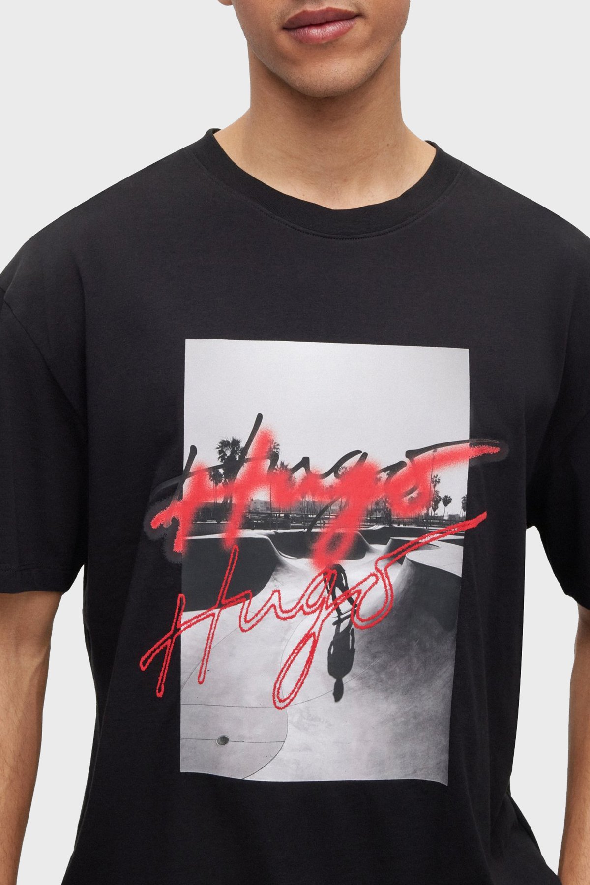 Baskılı % 100 Pamuk Oversize Bisiklet Yaka Erkek T Shirt 50491813 001 SİYAH
