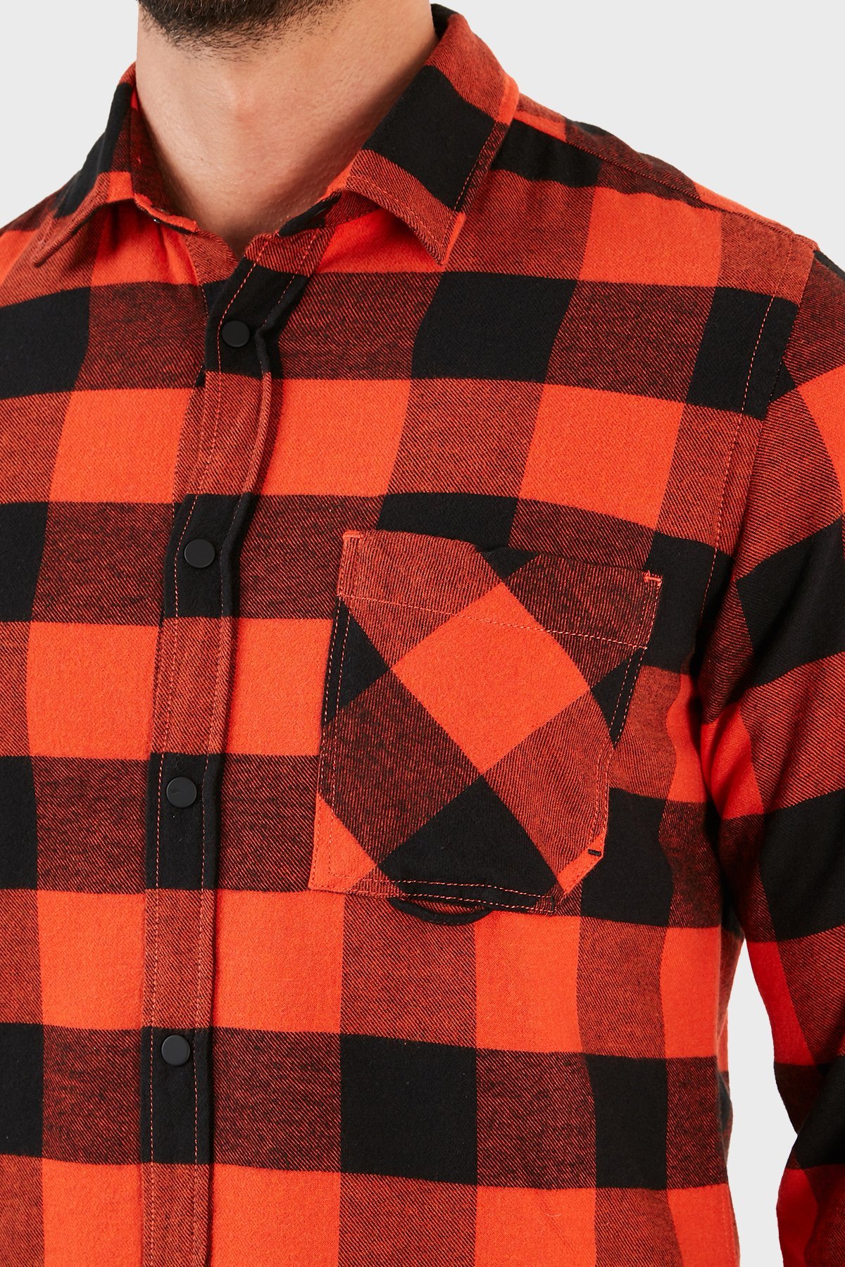 Ekoseli Cepli % 100 Pamuk Regular Fit Erkek Gömlek 50457778 821 SİYAH-KIRMIZI