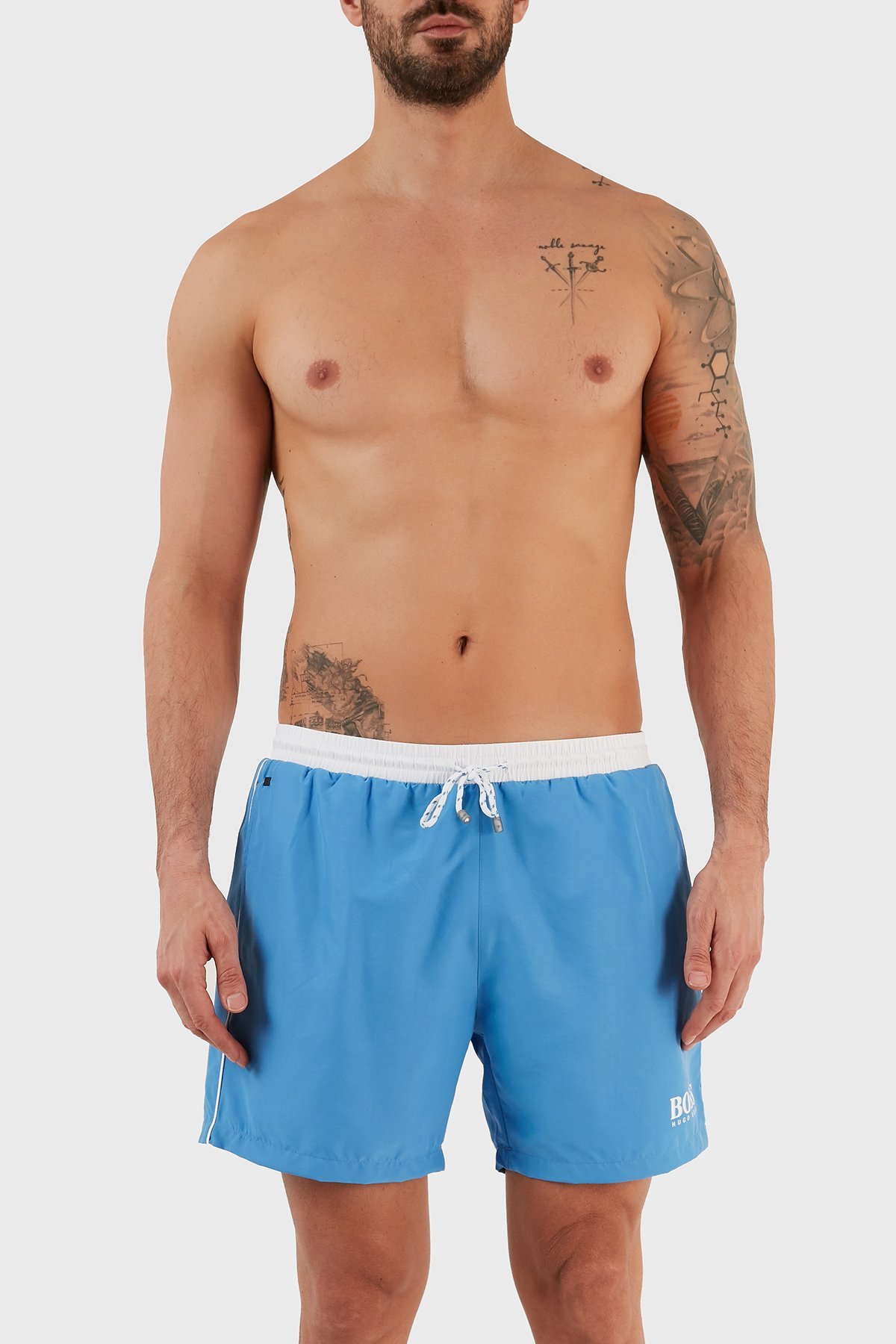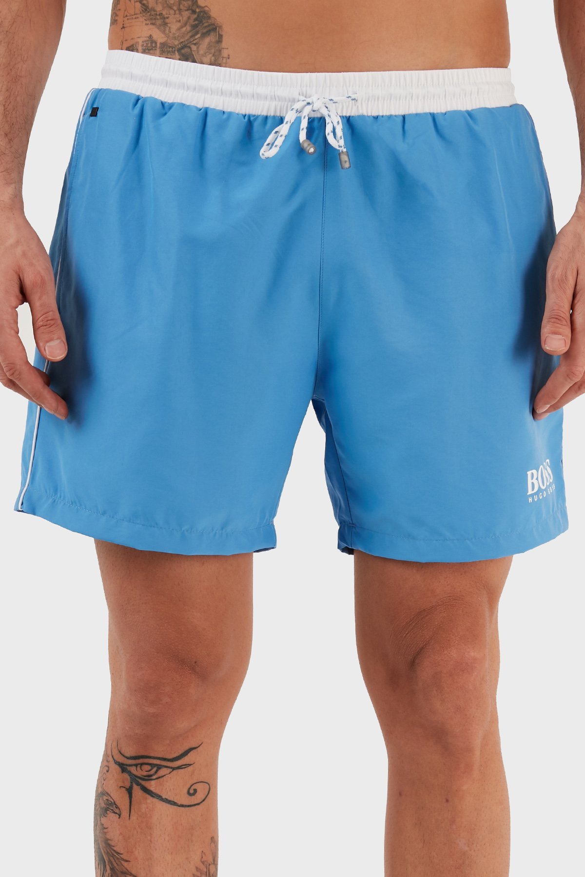 Logolu Deniz Şort Belden Bağlamalı Erkek Mayo Short 9985001 MAVİ