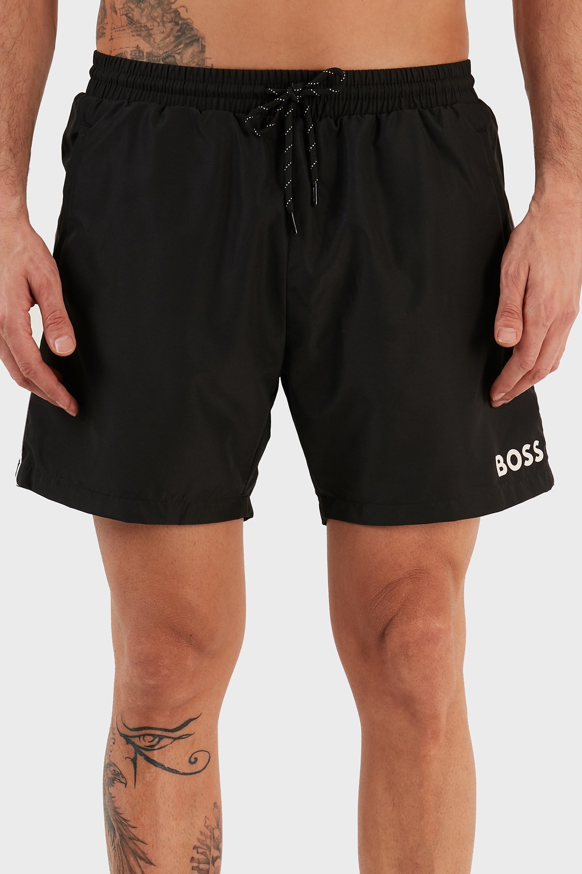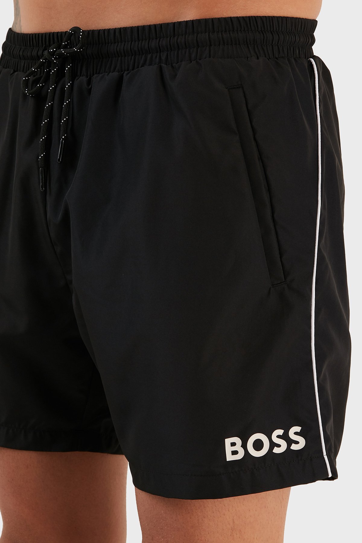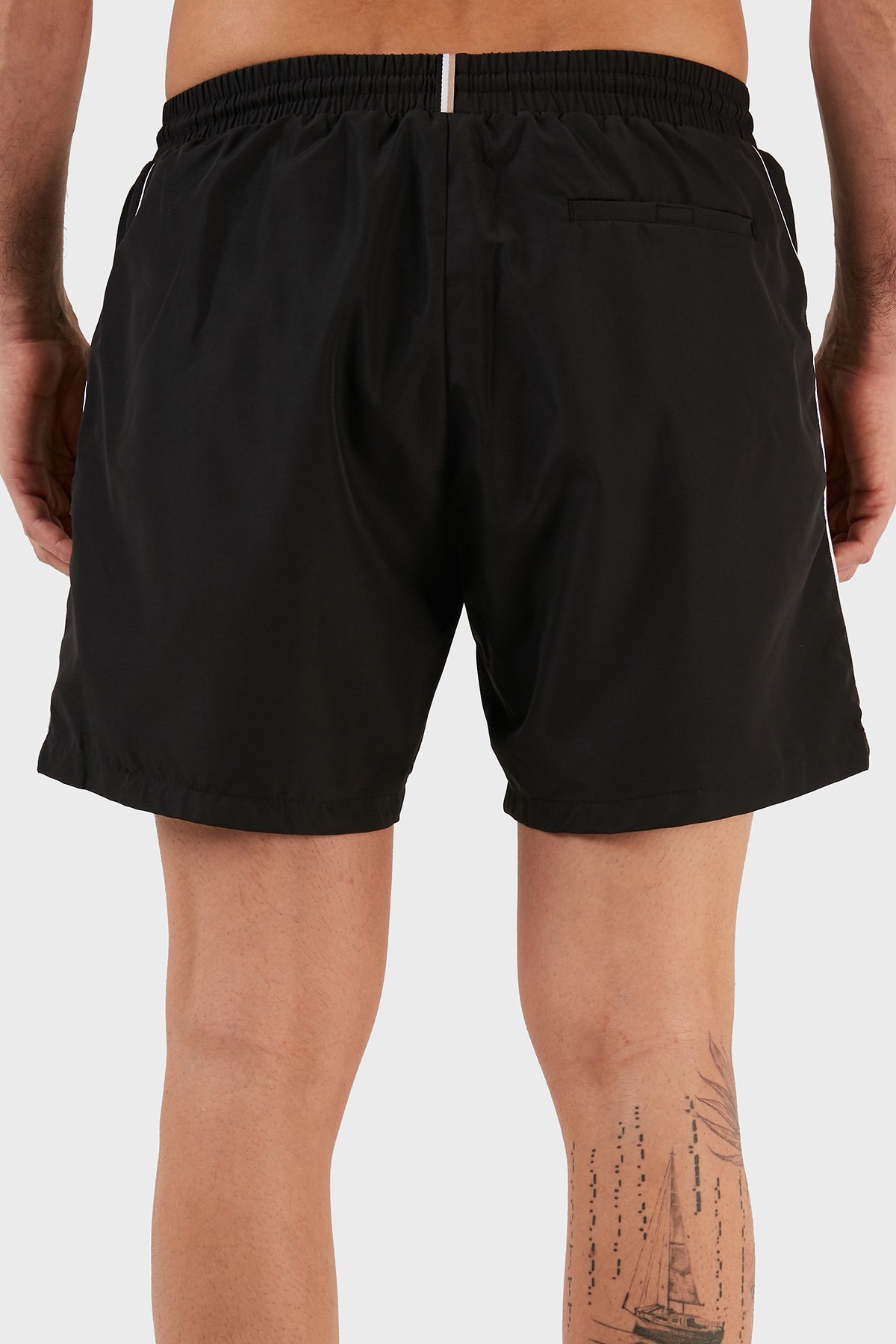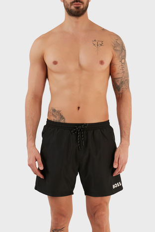 Logolu Deniz Şort Belden Bağlamalı Erkek Mayo Short 9985002 SİYAH