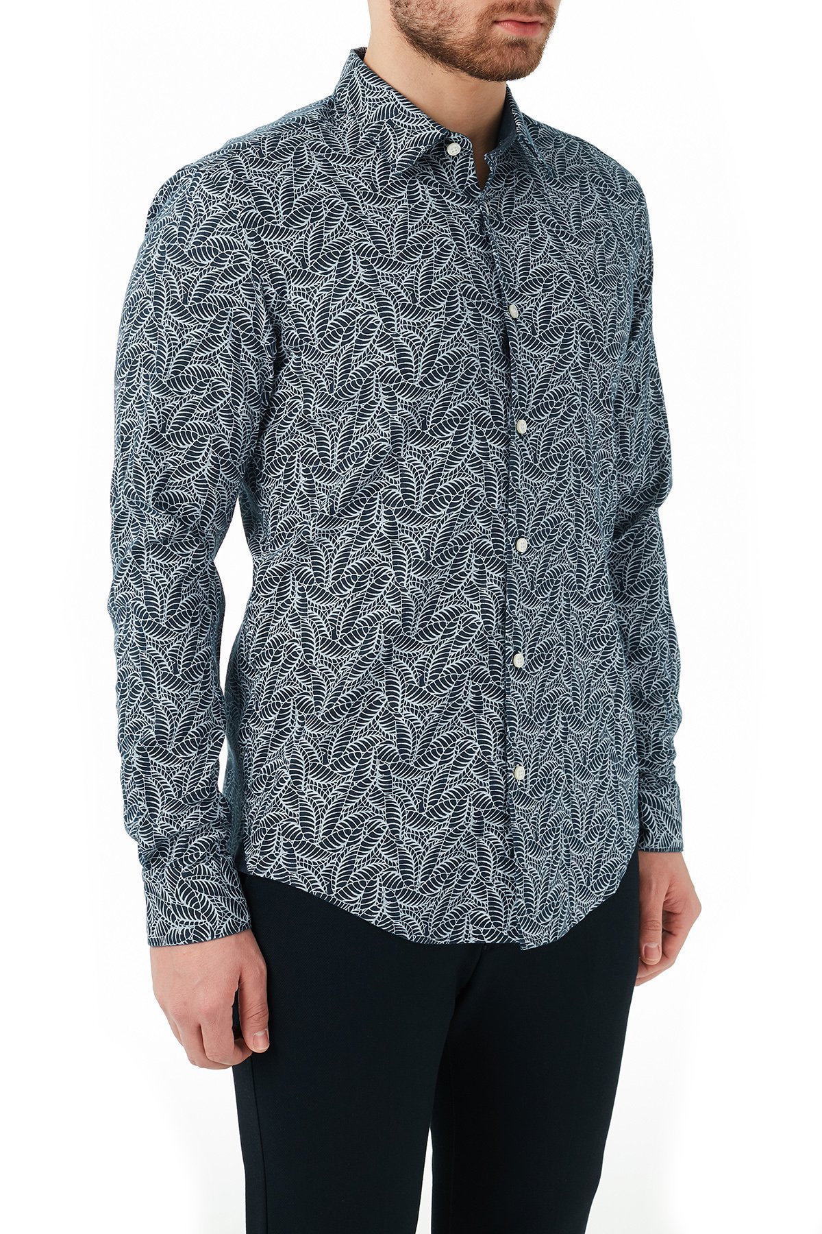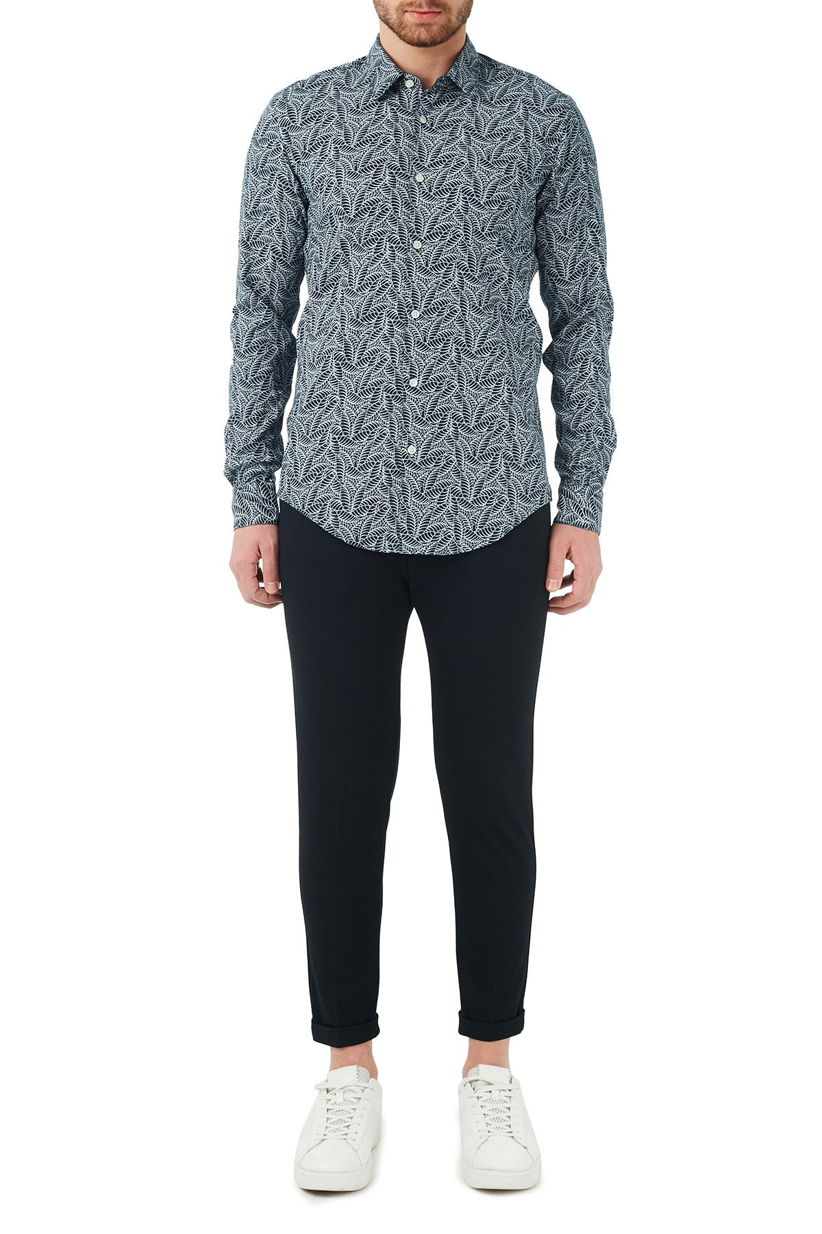 Slim Fit Uzun Kollu Keten Erkek Gömlek 50450806 403 LACİVERT