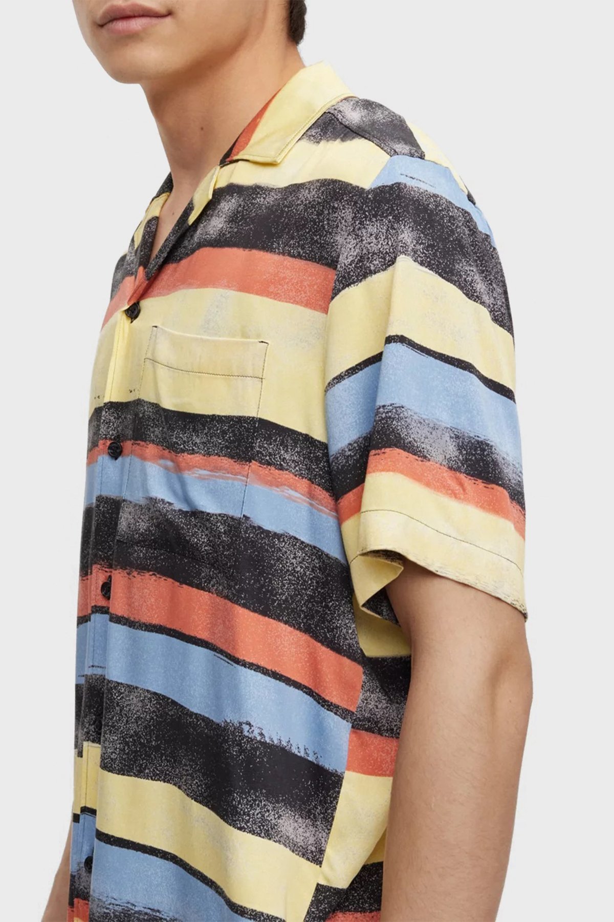 Desenli Apaş Yaka Relaxed Fit Erkek Gömlek 50490675 971 MAVİ-SARI