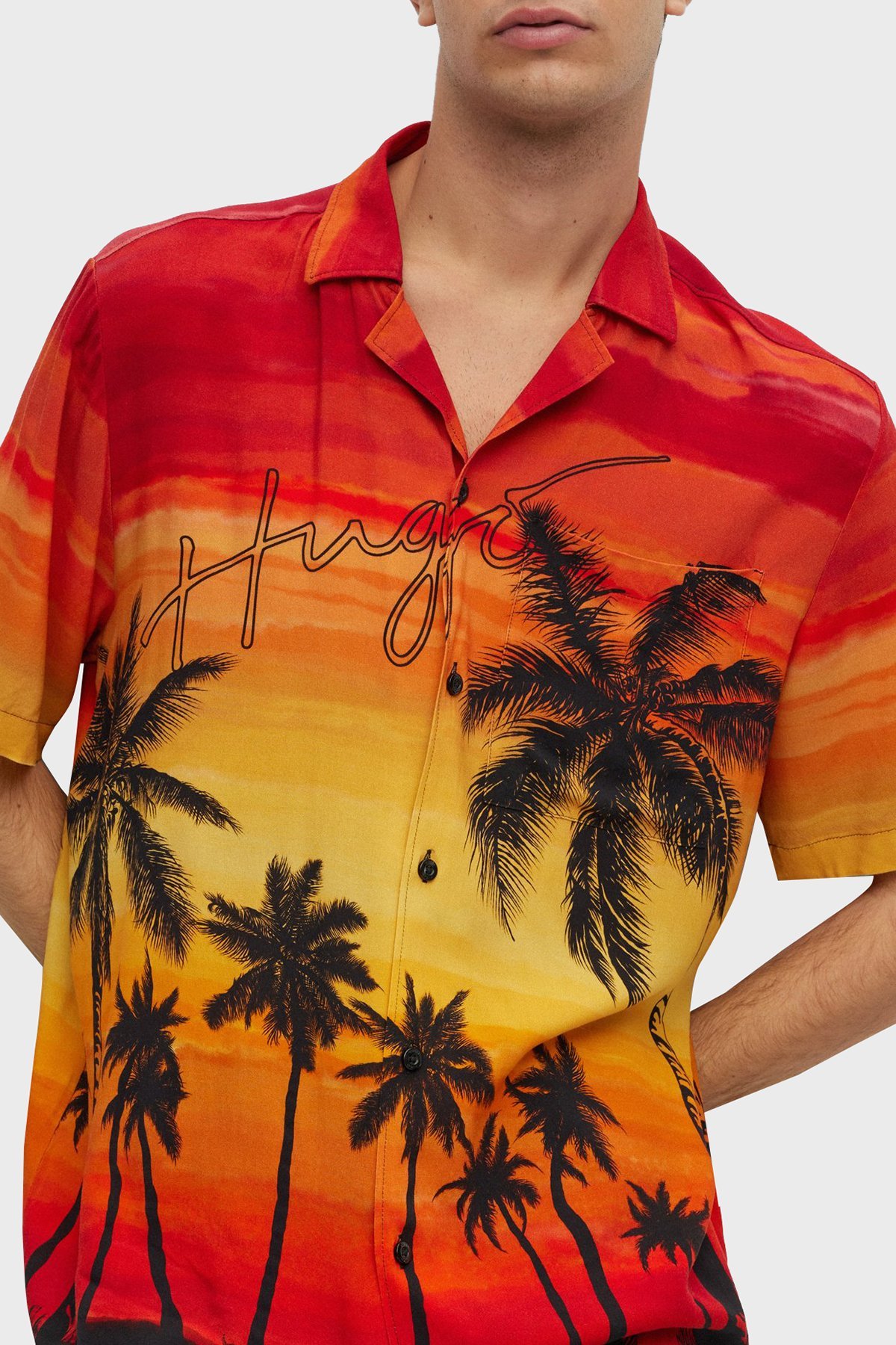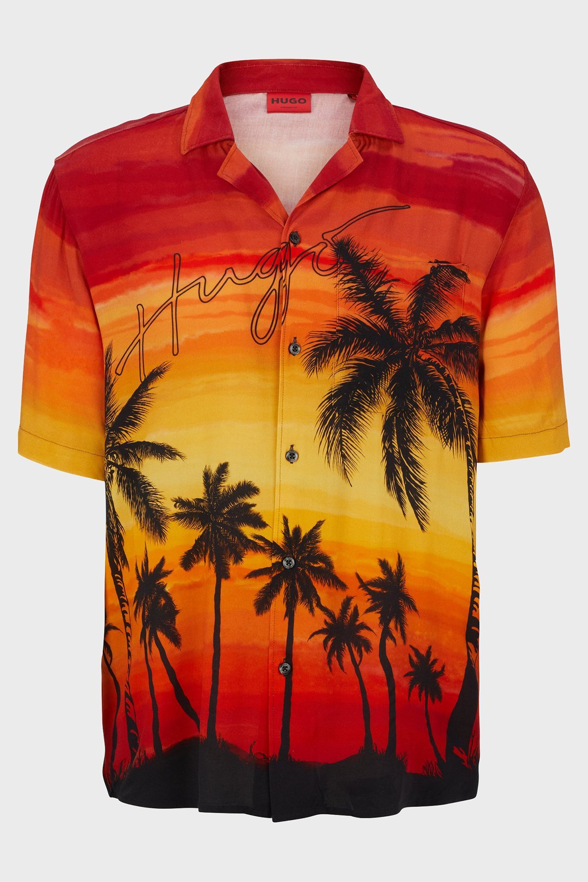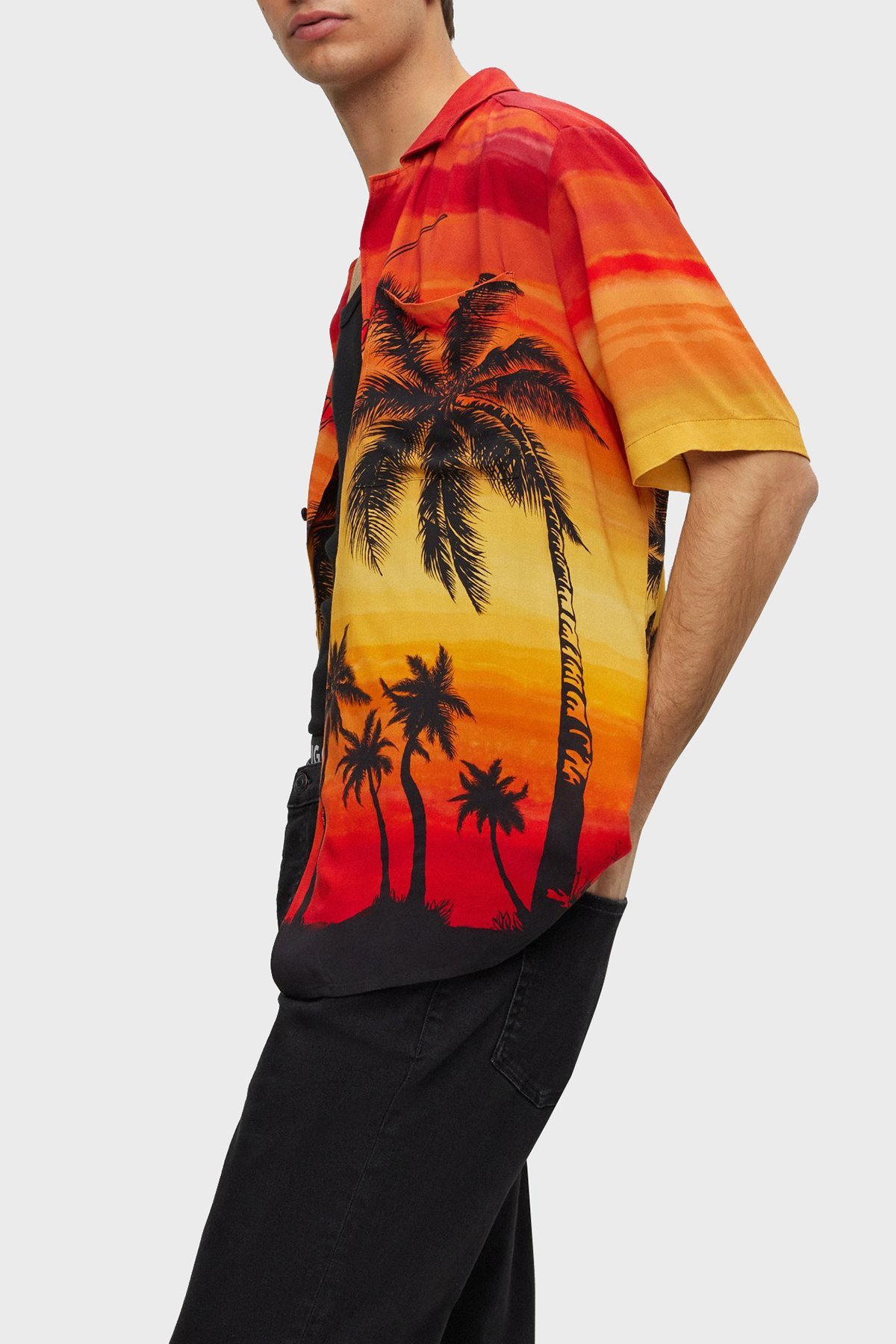 Desenli Apaş Yaka Relaxed Fit Erkek Gömlek 50490693 970 TURUNCU