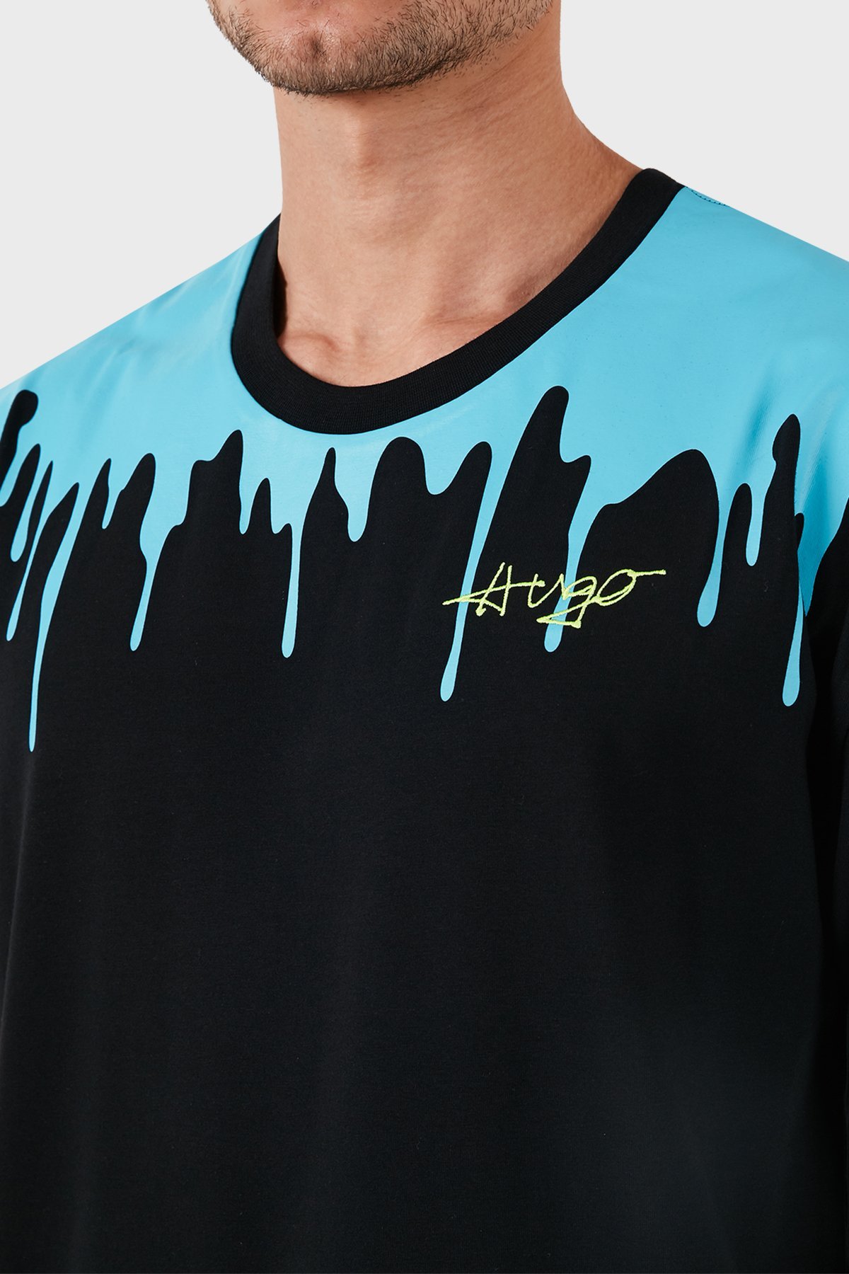 Desenli Bisiklet Yaka Pamuklu Slim Fit Erkek T Shirt 50515212 004 SİYAH
