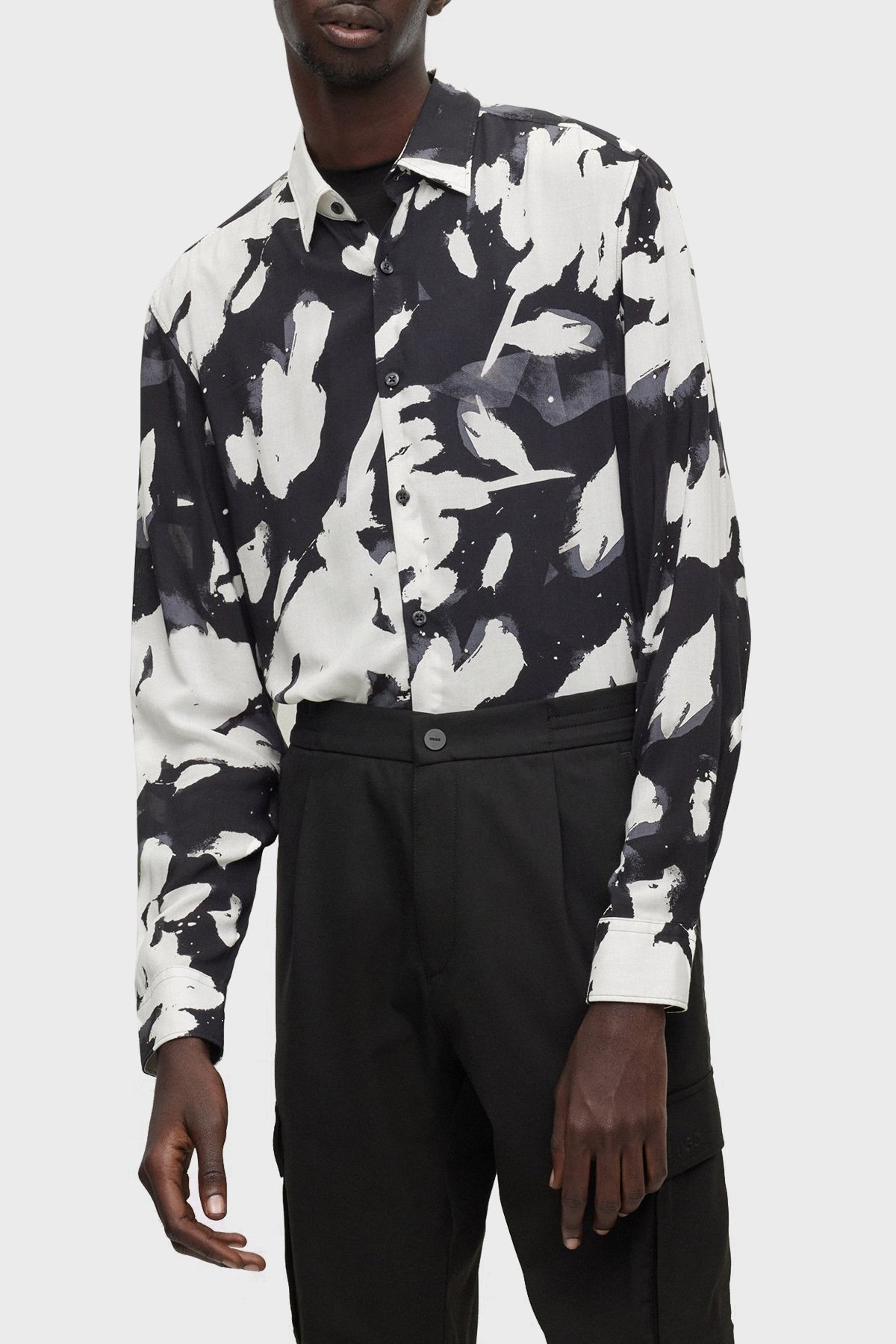 Desenli Slim Fit Poplin Erkek Gömlek 50484403 001 SİYAH