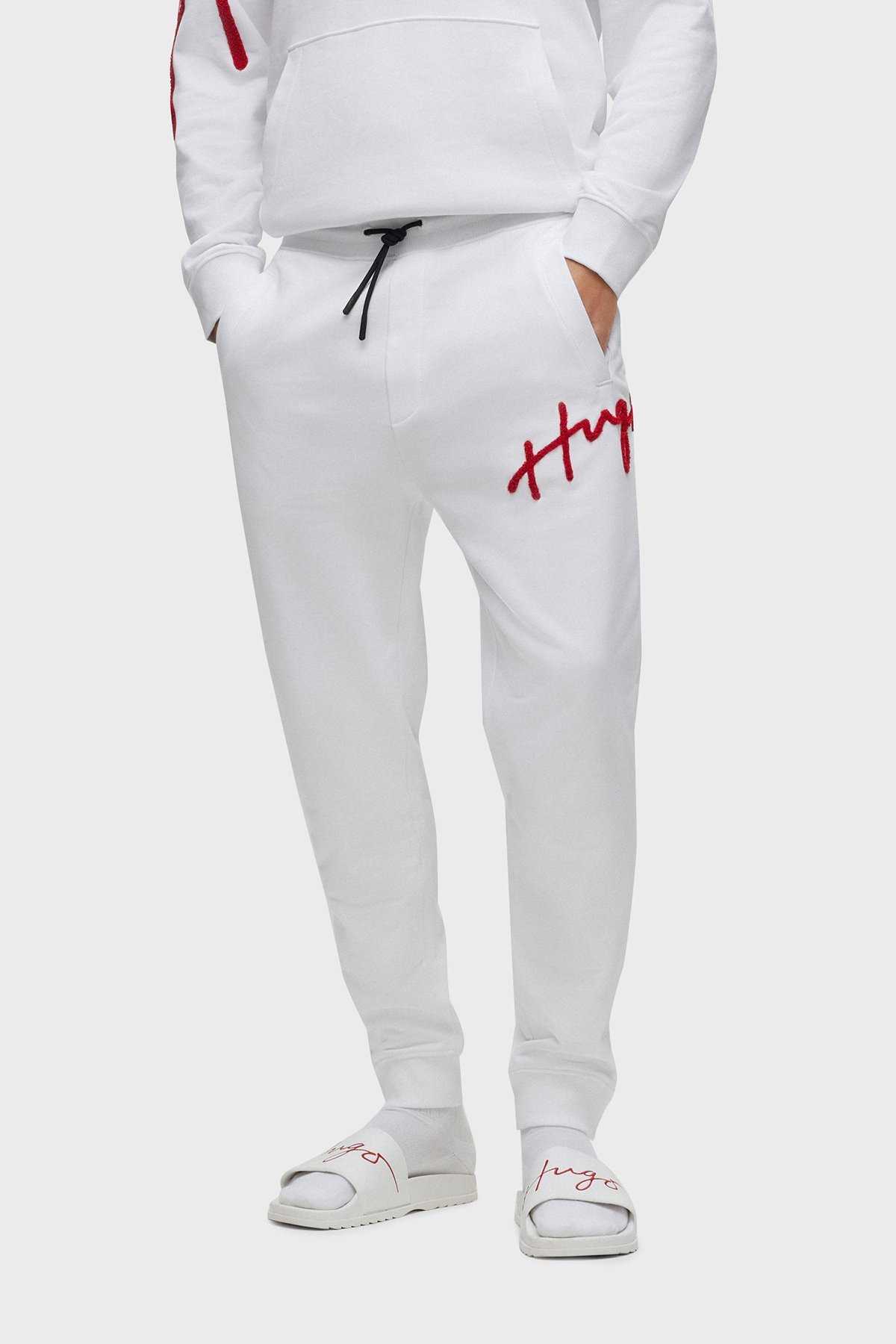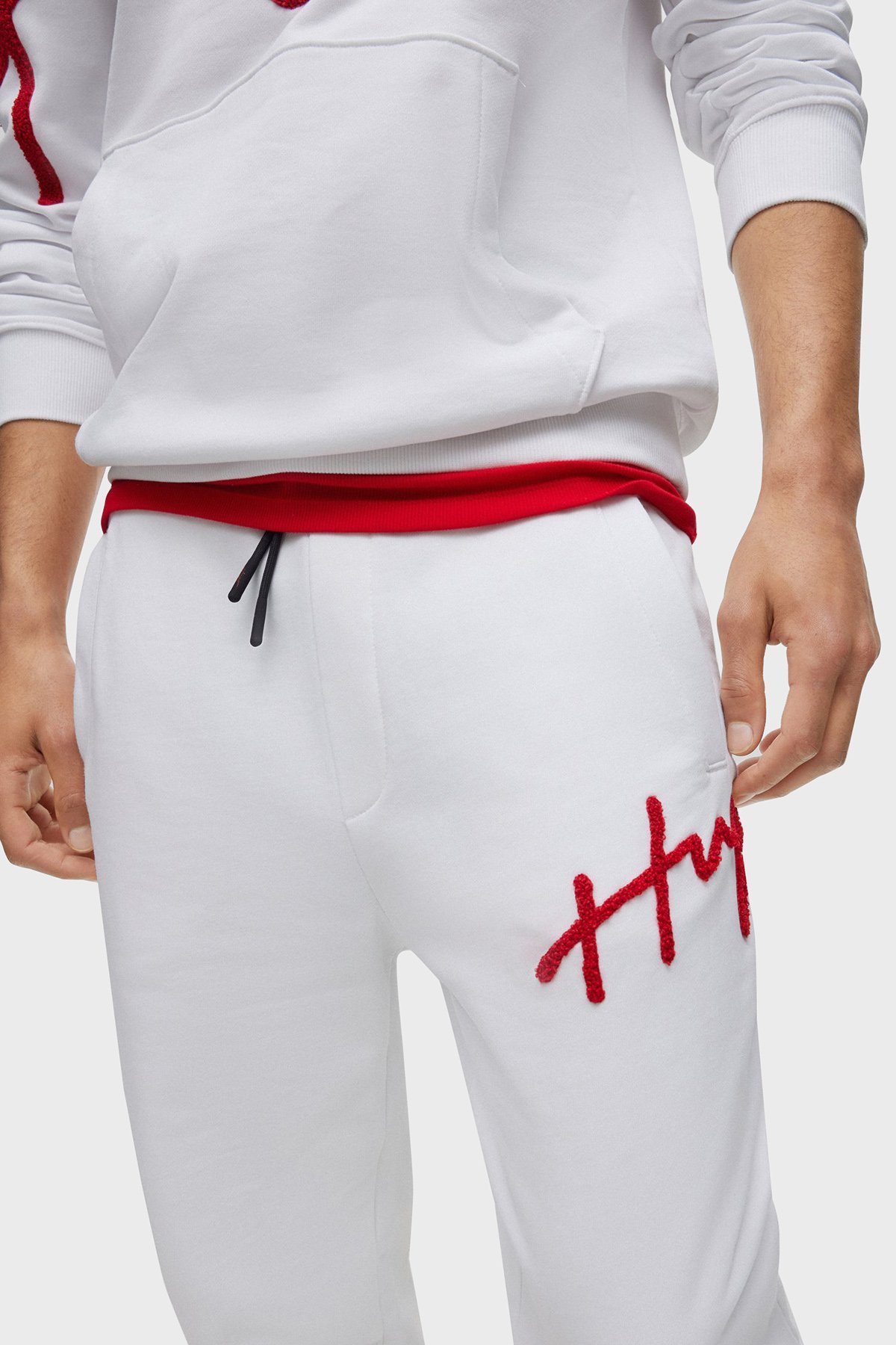 El Yazısı Logo İşlemeli Pamuklu Regular Fit Spor Erkek Pantolon 50482921 100 BEYAZ