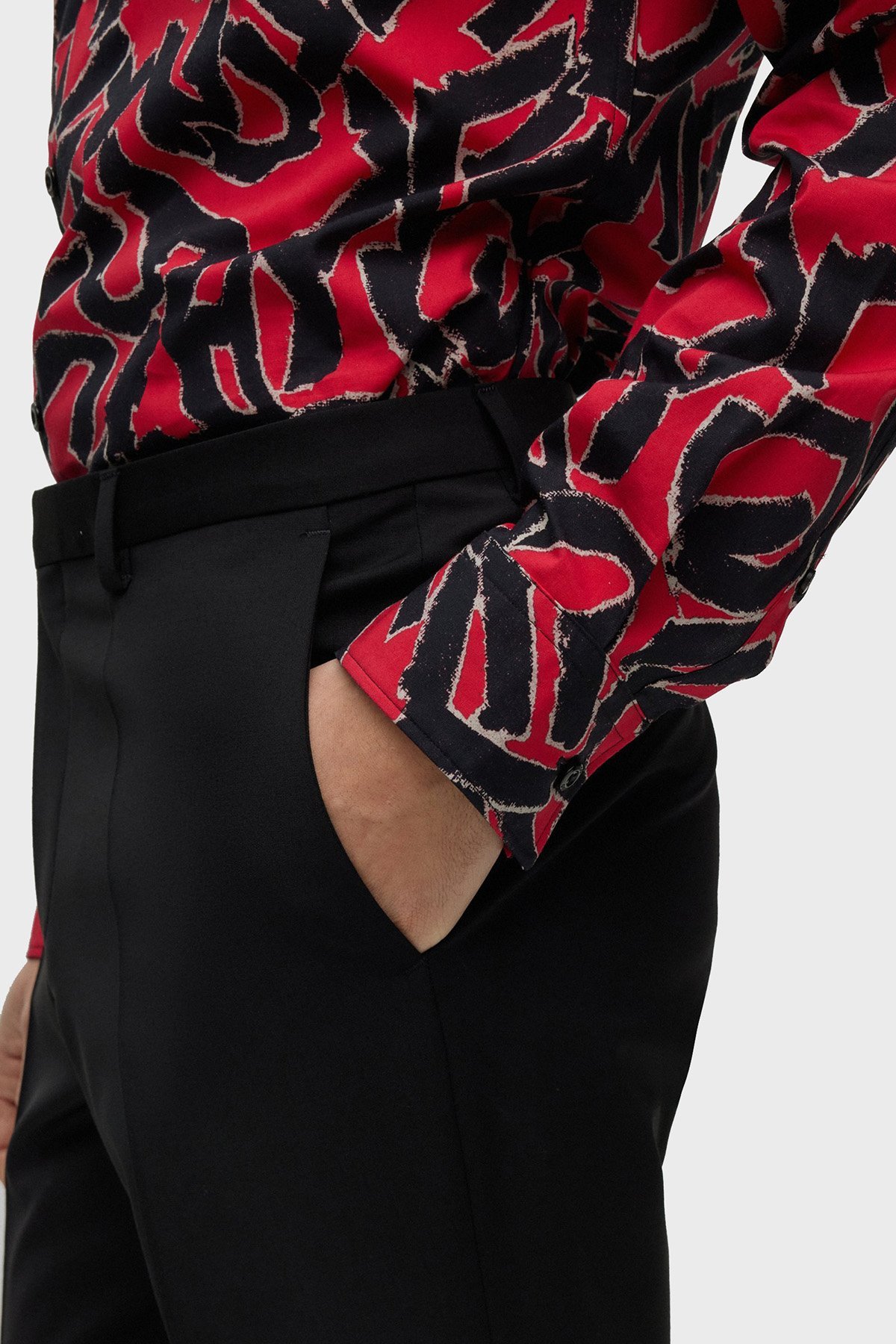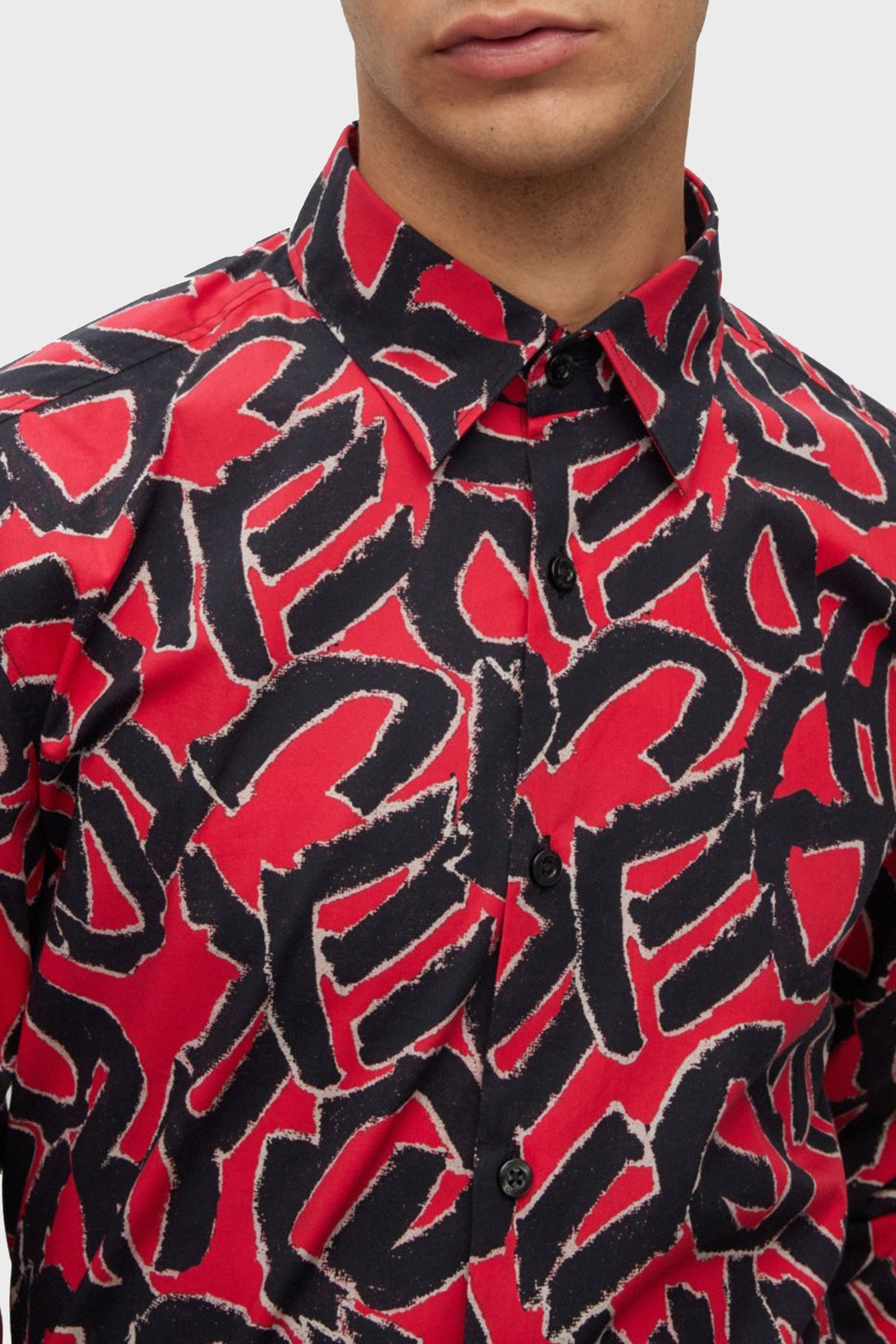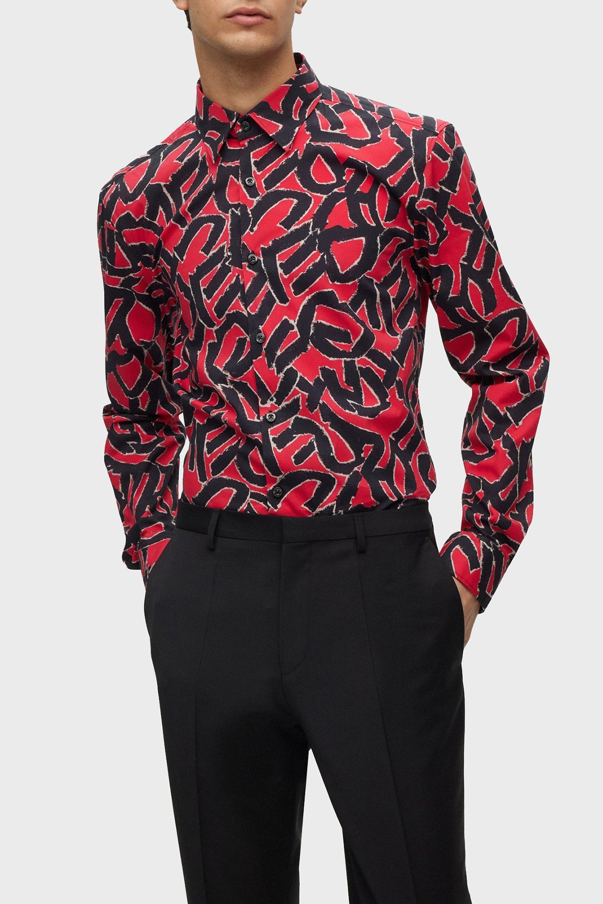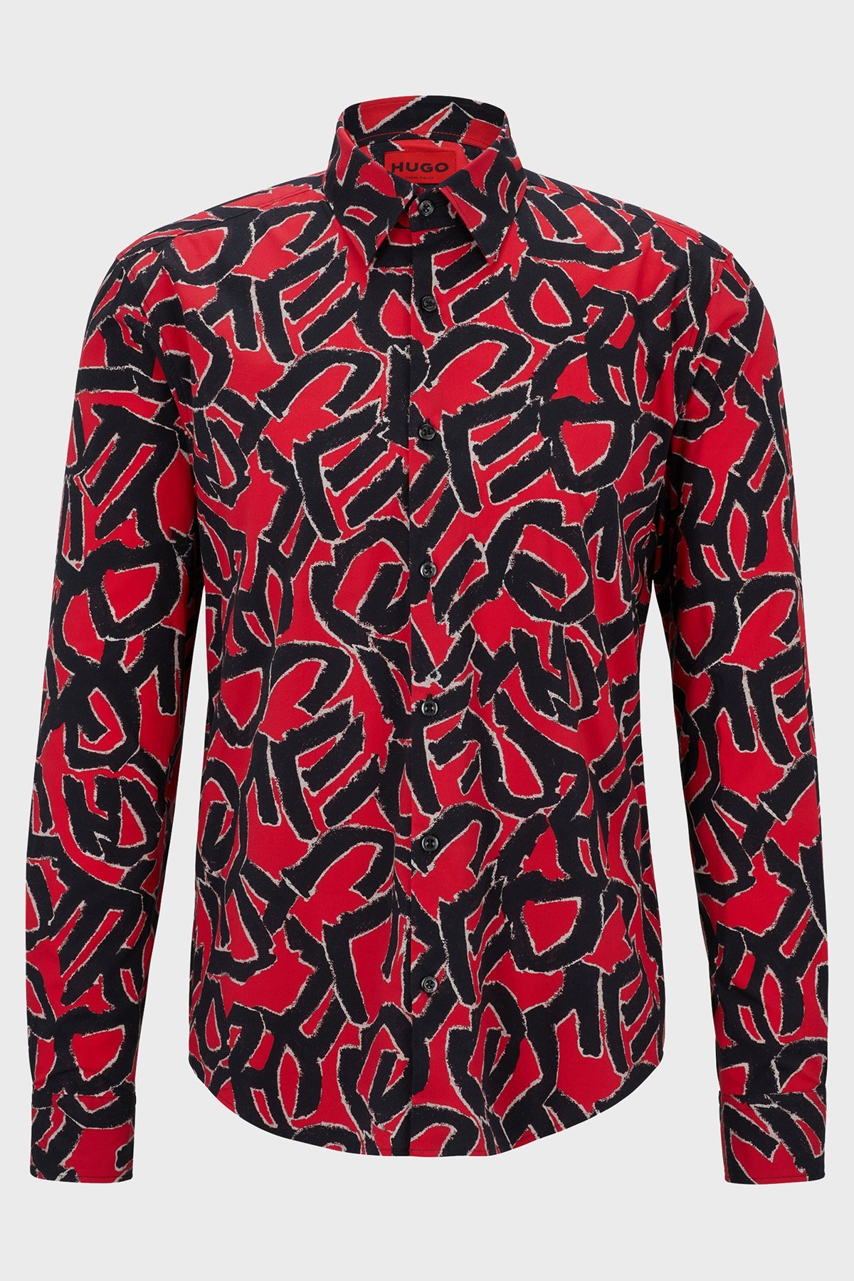 Esnek Organik Pamuklu Desenli Slim Fit Erkek Gömlek 50495871 693 KIRMIZI-SİYAH