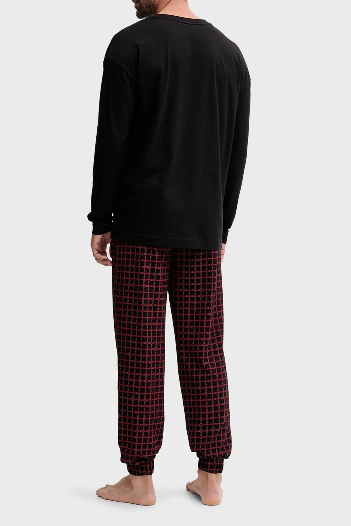 Kareli Pamuklu Relaxed Fit Uzun Kollu Erkek Pijama Takımı 50550098 961 SİYAH
