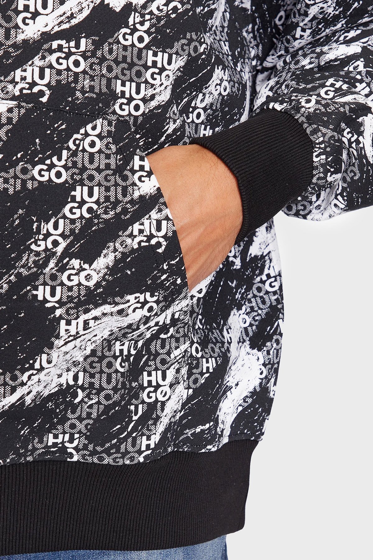 Logo Baskılı Kapüşonlu Kanguru Cepli % 100 Pamuk Regular Fit Erkek Sweat 50500264 001 SİYAH-BEYAZ