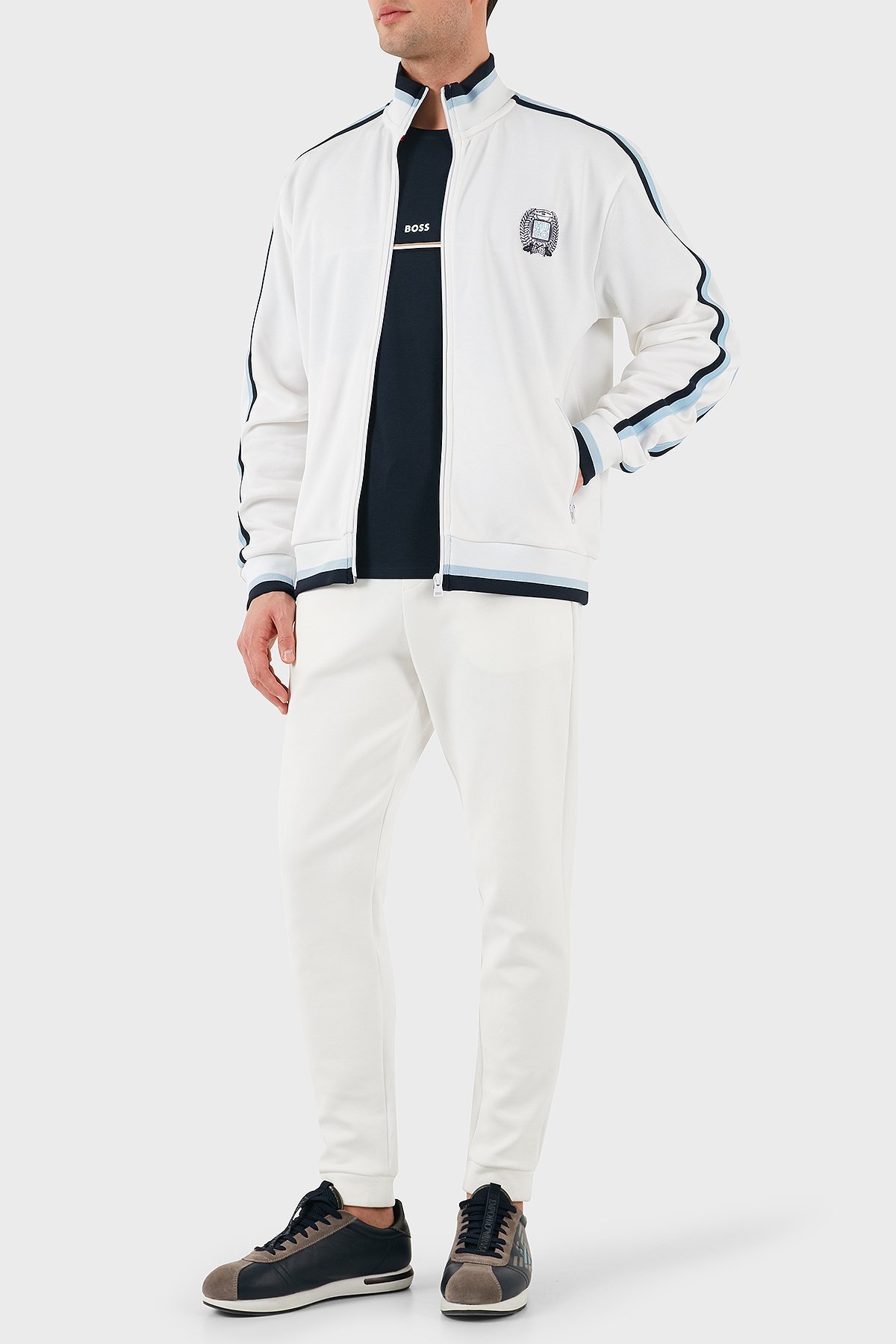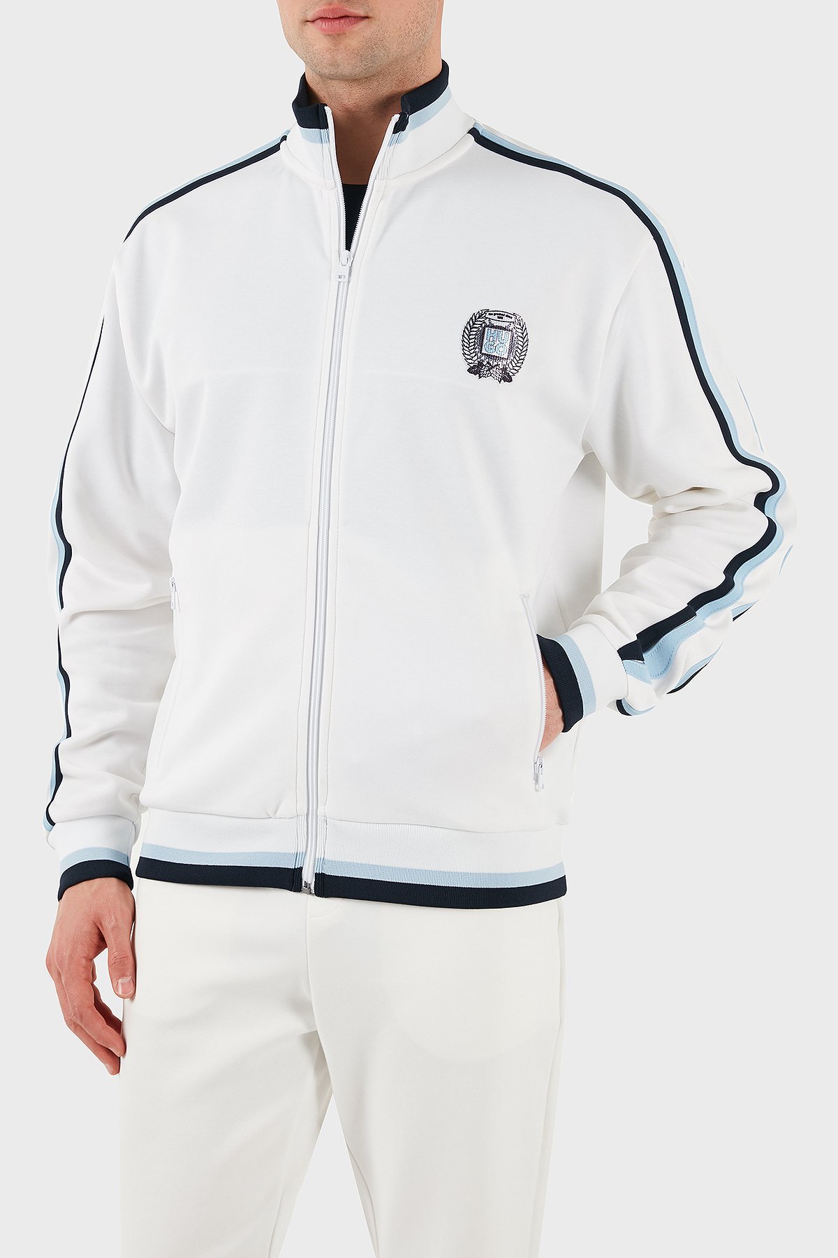 Logo Baskılı Pamuklu Regular Fit Şerit Detaylı Dik Yaka Erkek Sweat 50510098 100 BEYAZ