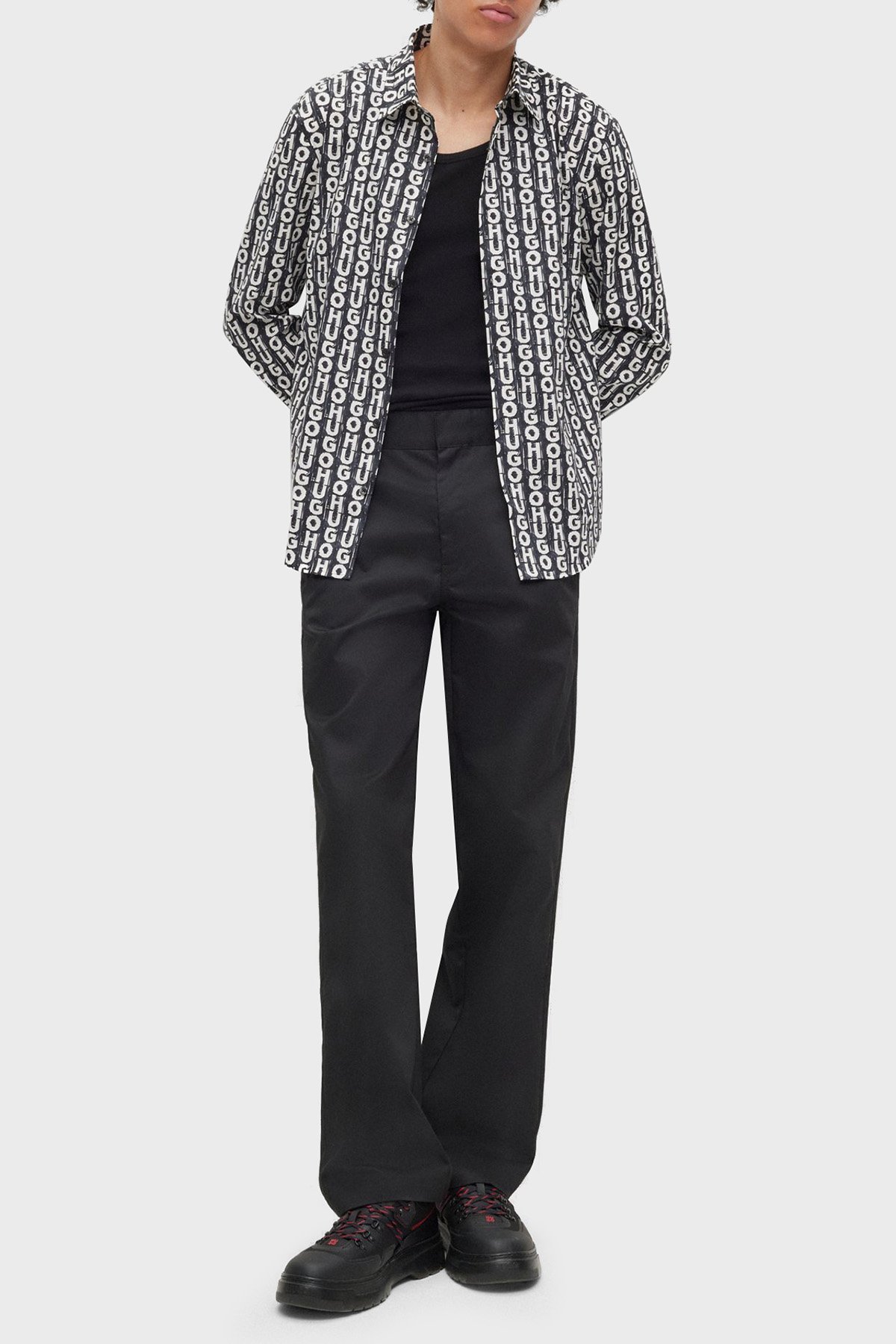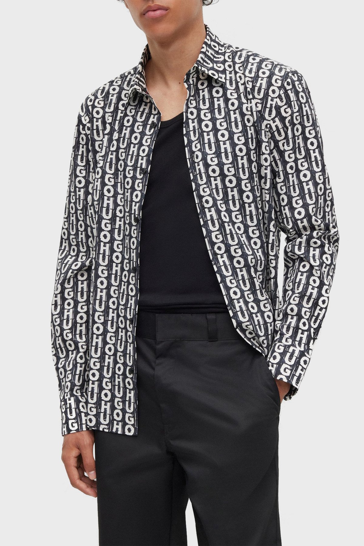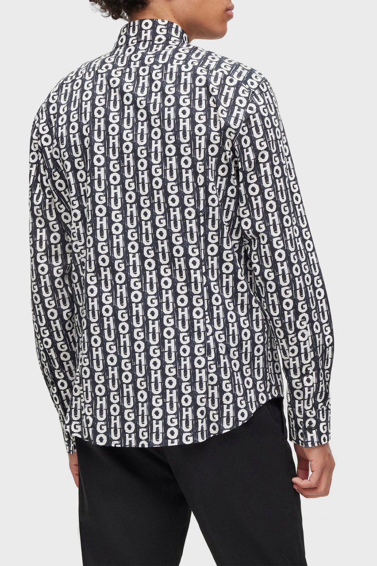 Logo Baskılı Streç Pamuklu Slim Fit Erkek Gömlek 50495865 001 SİYAH