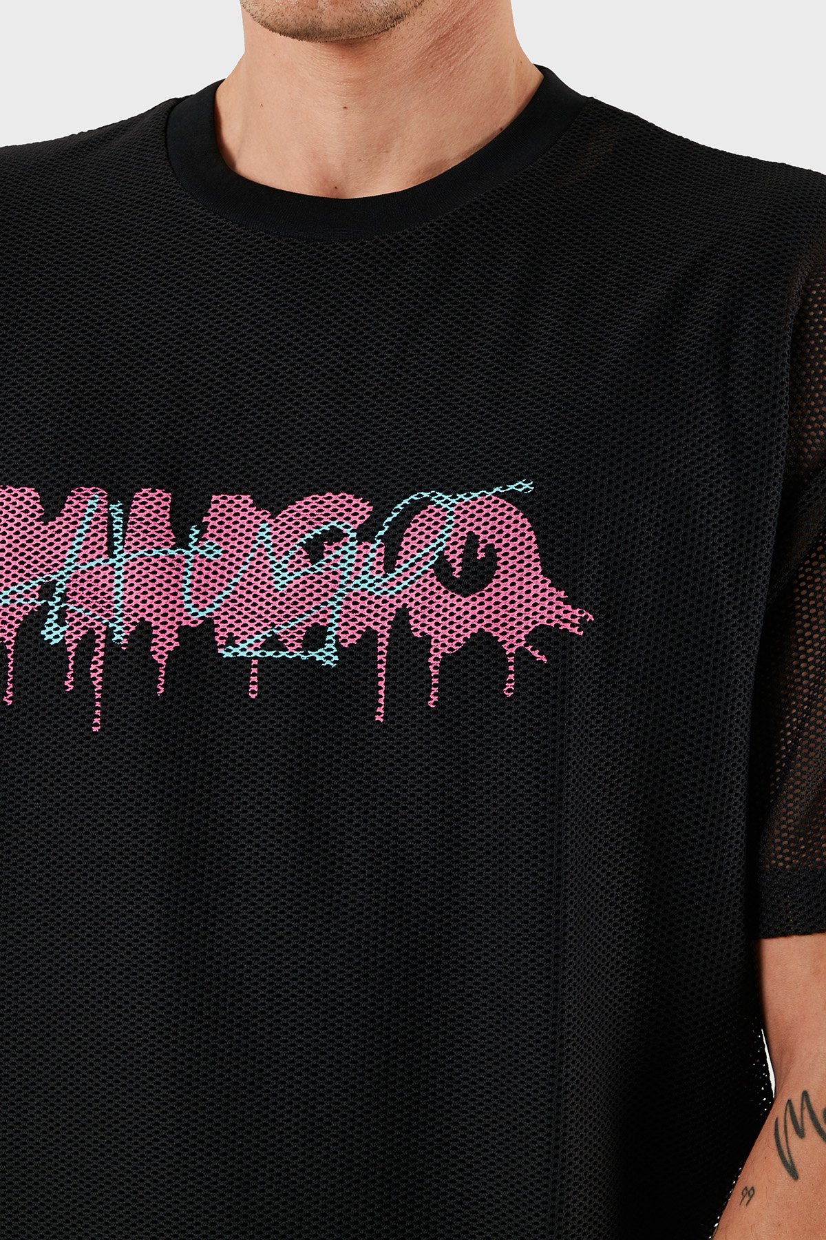 Logo Efektli Oversize Fit Bisiklet Yaka File Erkek T Shirt 50510000 001 SİYAH