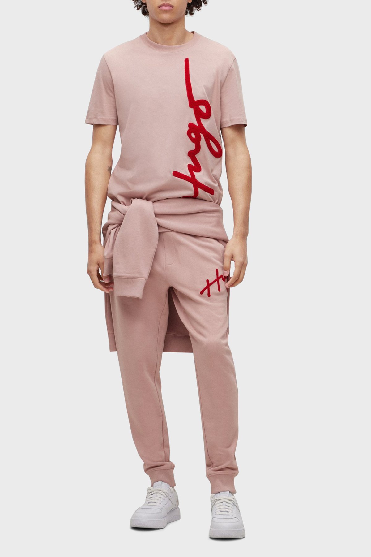 Logo İşlemeli Organik Pamuklu Bisiklet Yaka Erkek T Shirt 50482884 687 PUDRA