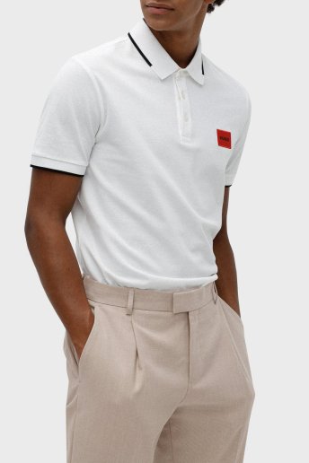 Logolu % 100 Pamuk Slim Fit Erkek Polo T Shirt 50467384 100 BEYAZ