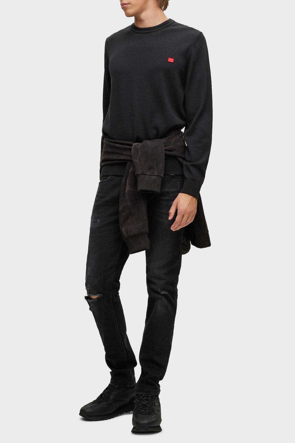 Logolu Bisiklet Yaka Regular Fit % 100 Pamuk Erkek Kazak 50475083 001 SİYAH
