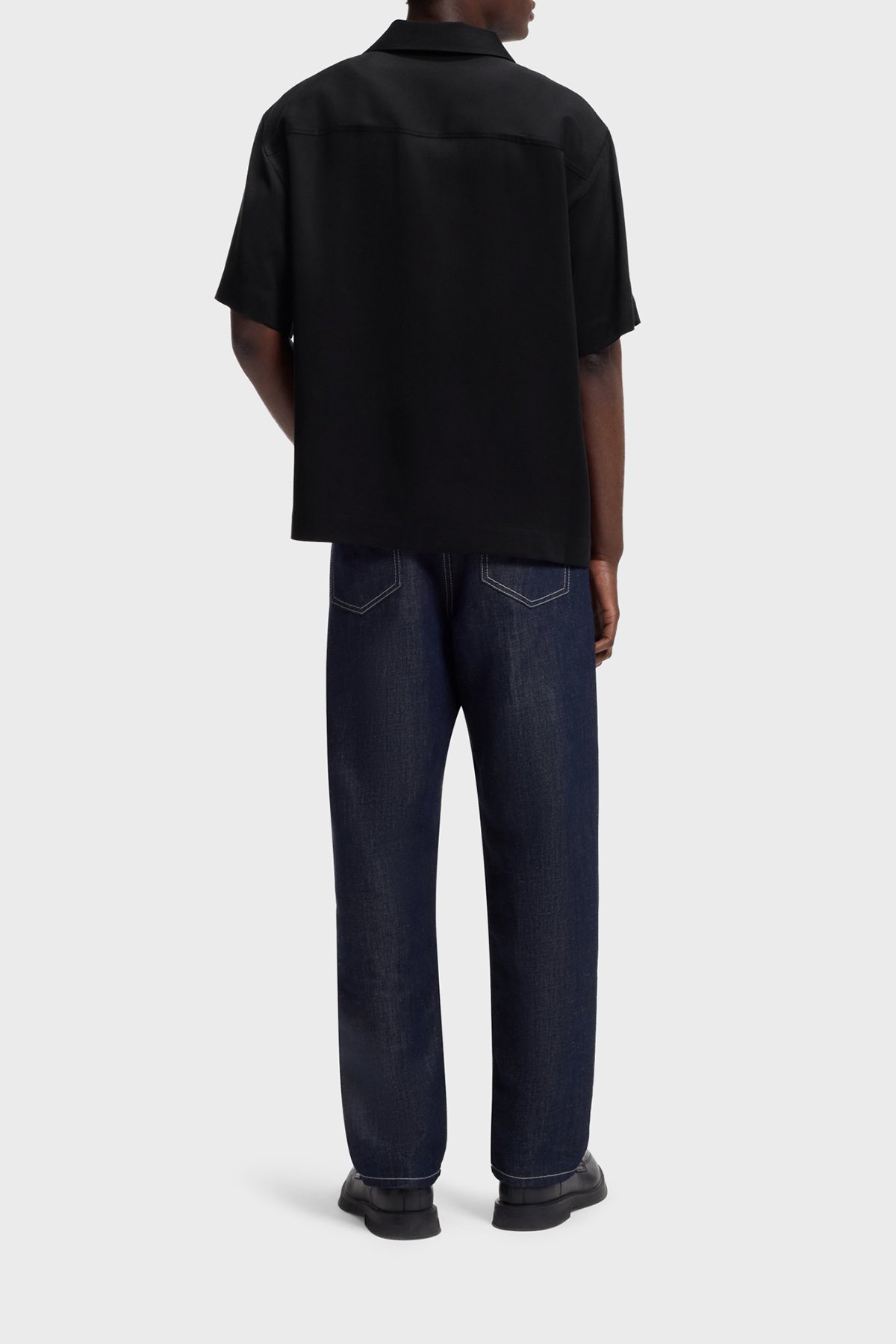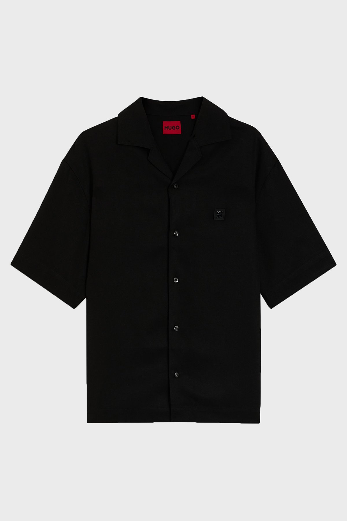 Logolu Oversize Fit Klasik Yaka Kısa Kollu Erkek Gömlek 50560593 001 SİYAH