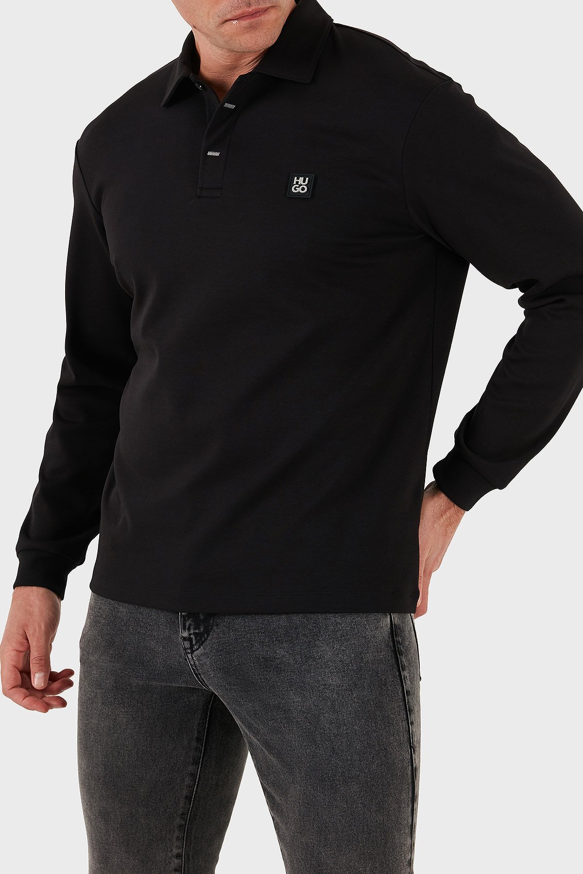 Logolu Regular Fit Uzun Kollu Düğmeli Erkek Polo Yaka T Shirt 50542578 001 SİYAH