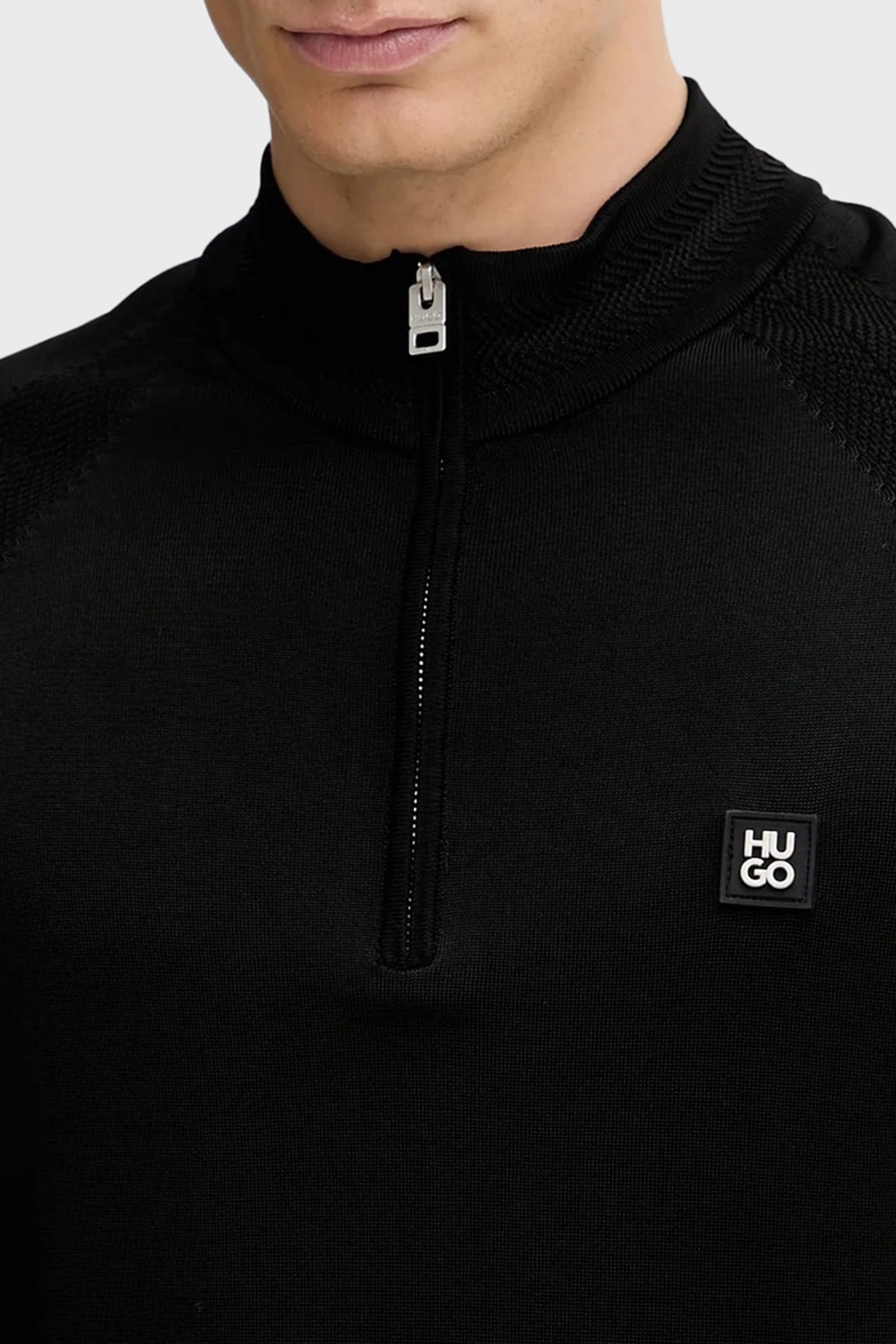 Logolu Regular Fit Yarım Fermuarlı Dik Yaka Erkek Kazak 50543786 001 SİYAH