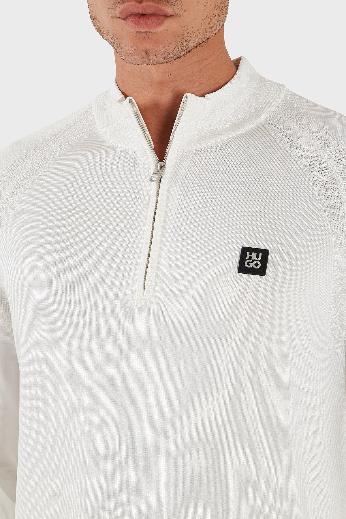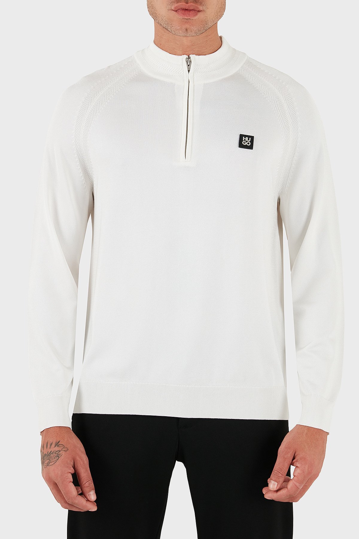 Logolu Regular Fit Yarım Fermuarlı Dik Yaka Erkek Kazak 50543786 102 BEYAZ