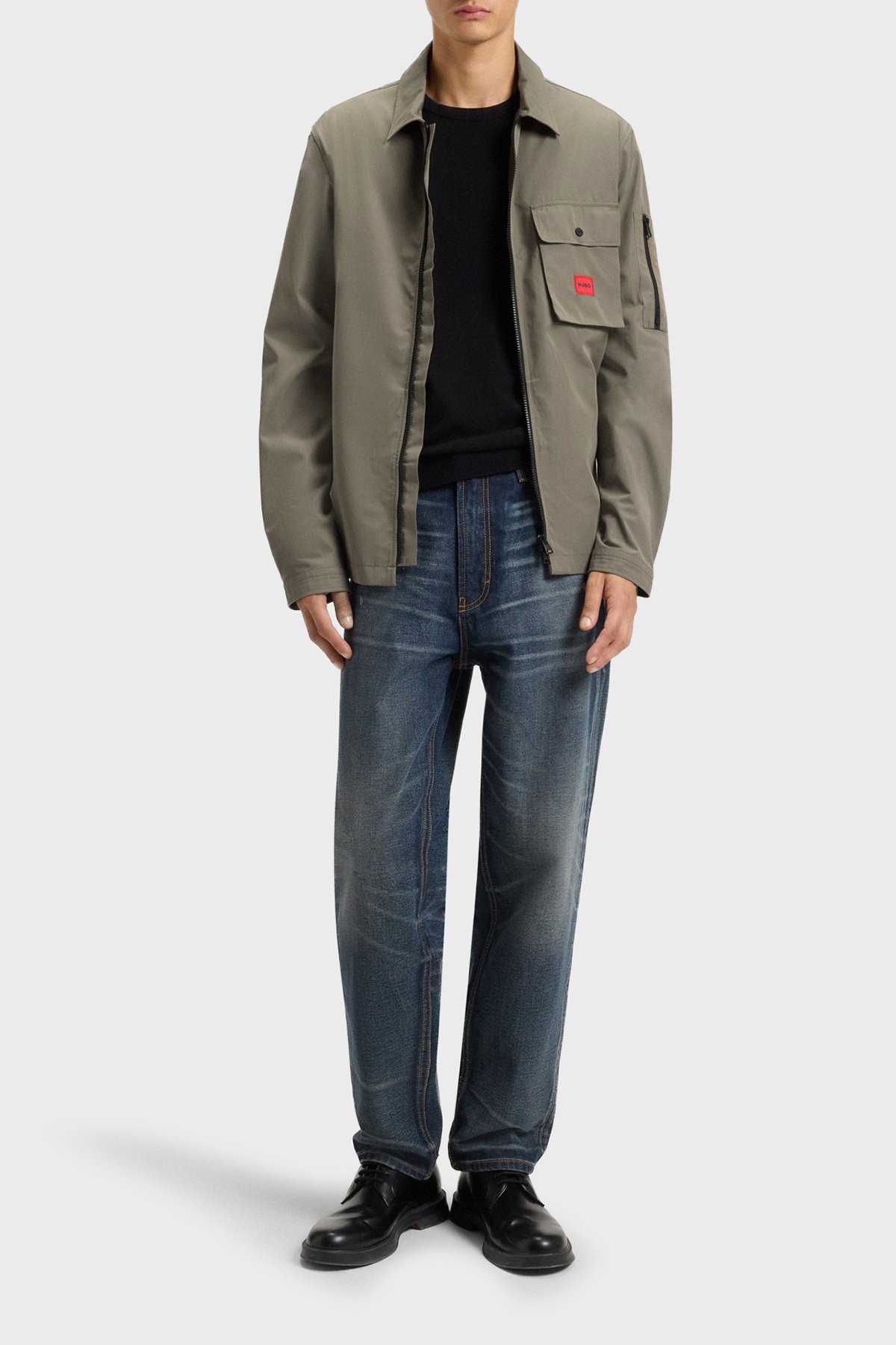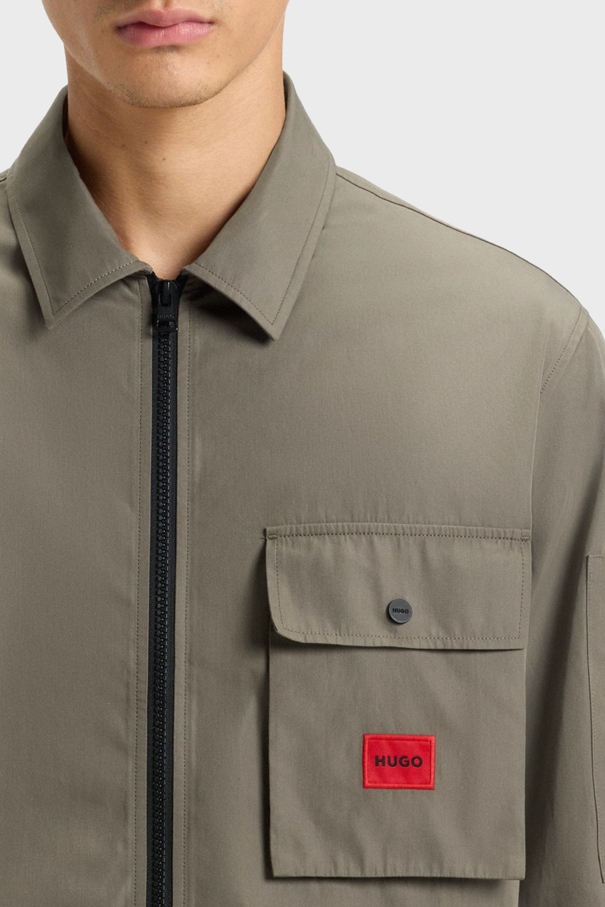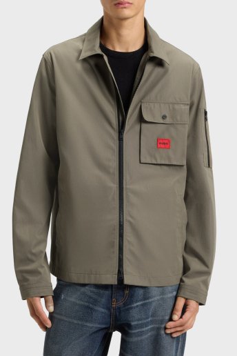 Pamuk Karışımlı Relaxed Fit Logolu Fermuarlı Kanvas Erkek Gömlek 50482701 032 HAKİ