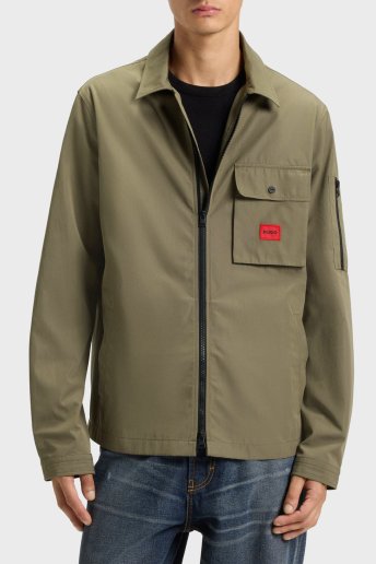 Pamuk Karışımlı Relaxed Fit Logolu Fermuarlı Kanvas Erkek Gömlek 50482701 355 HAKİ
