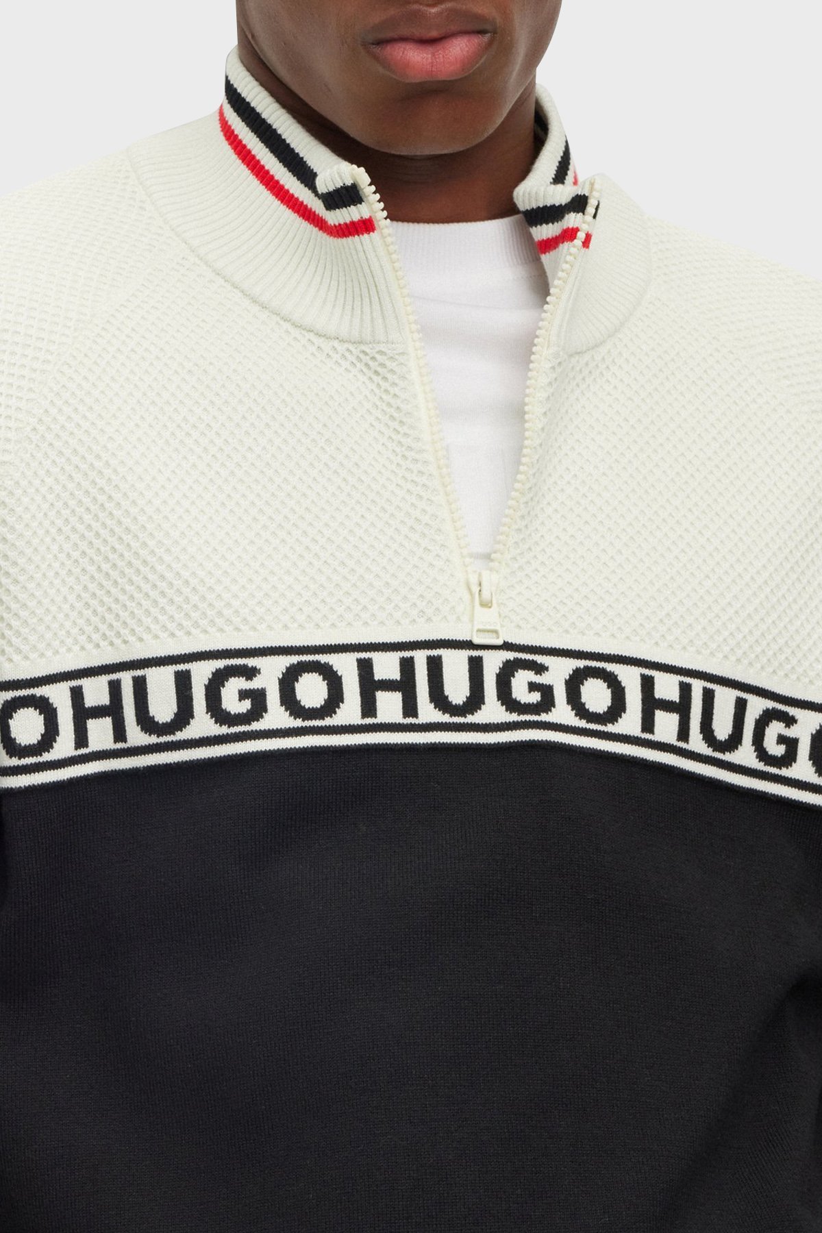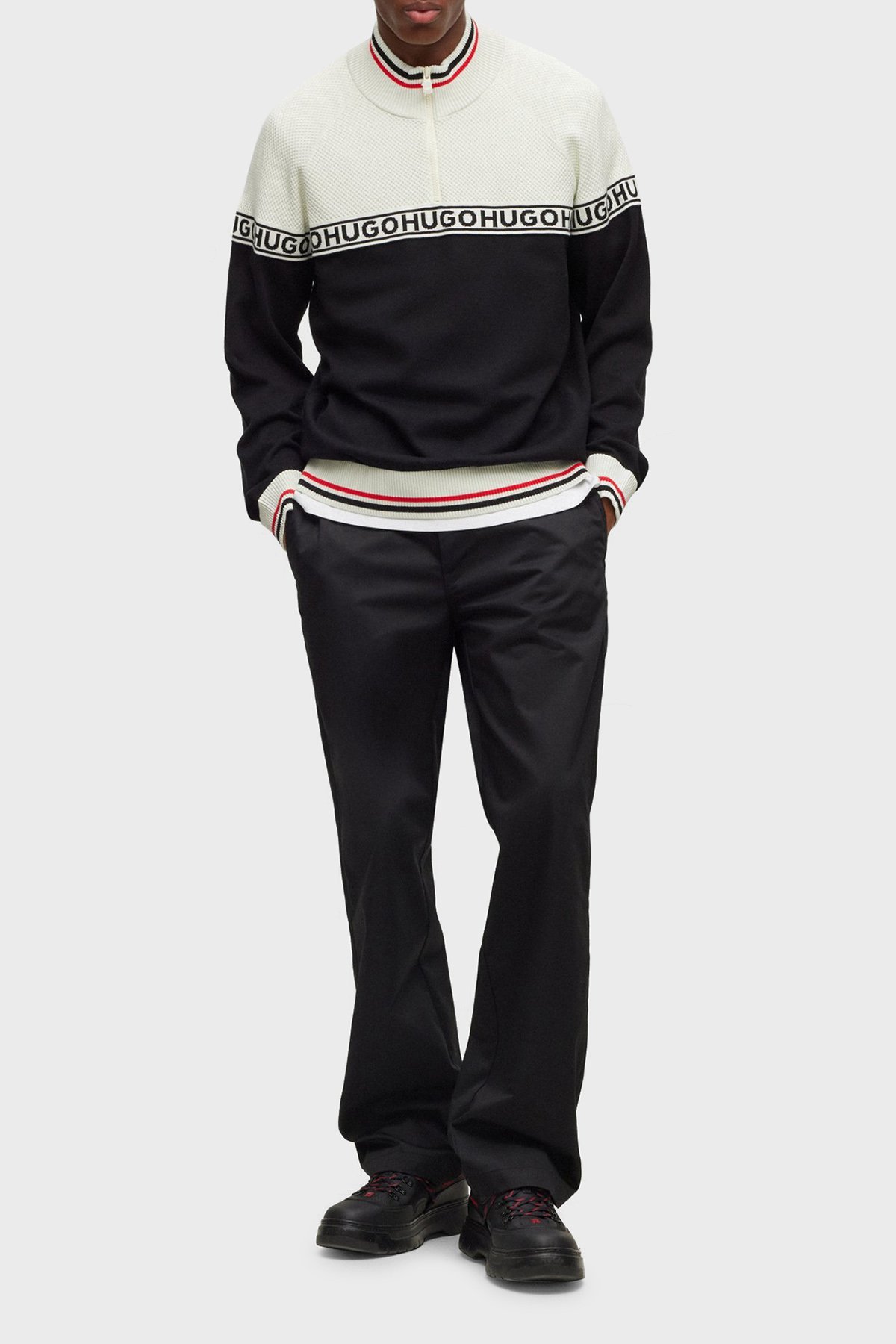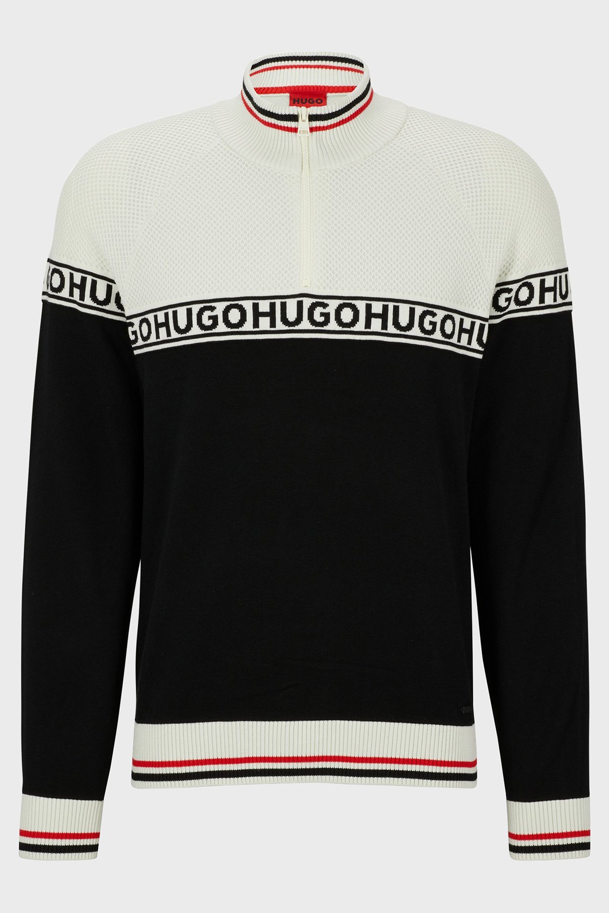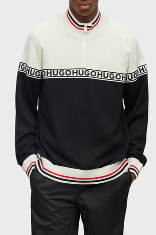 Pamuk ve İpek Karışımlı Regular Fit Yarım Fermuarlı Dik Yaka Erkek Kazak 50492800 333 SİYAH-EKRU