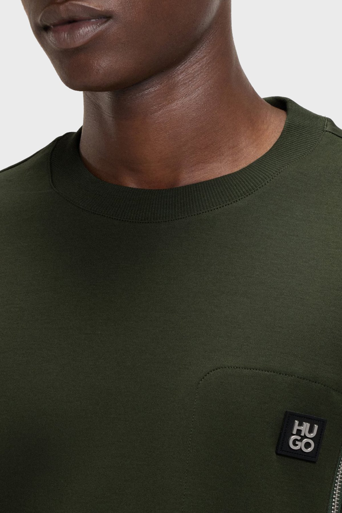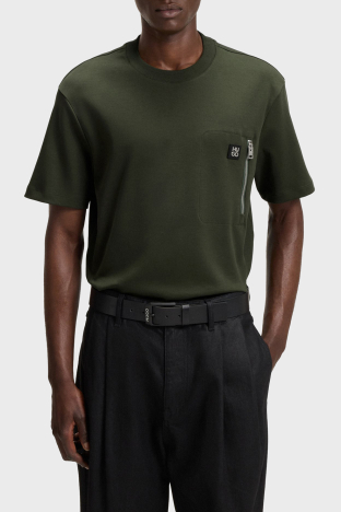 Pamuklu Relaxed Fit Fermuarlı Tek Cepli Bisiklet Yaka Erkek T Shirt 50542566 309 KOYU YEŞİL