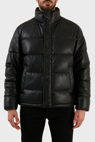 Regular Fit Dik Yaka Suni Deri Şişme Erkek Mont 50474656 001 SİYAH