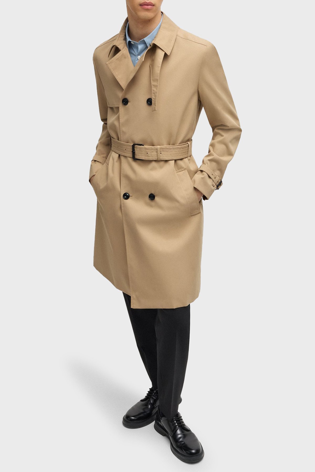 Su İtici Pamuklu Kemerli Apaş Yaka Yırtmaçlı Erkek Trençkot 50535072 269 BEJ