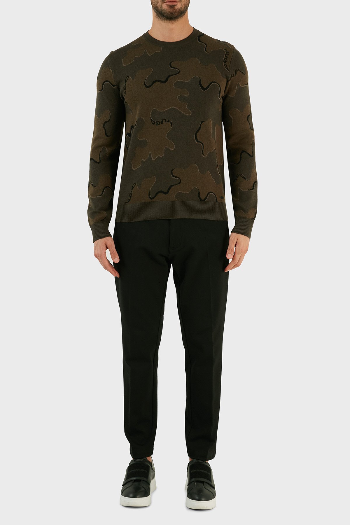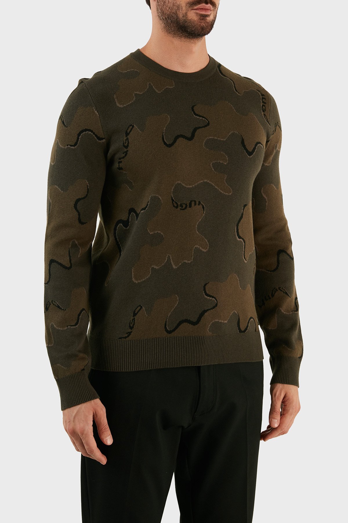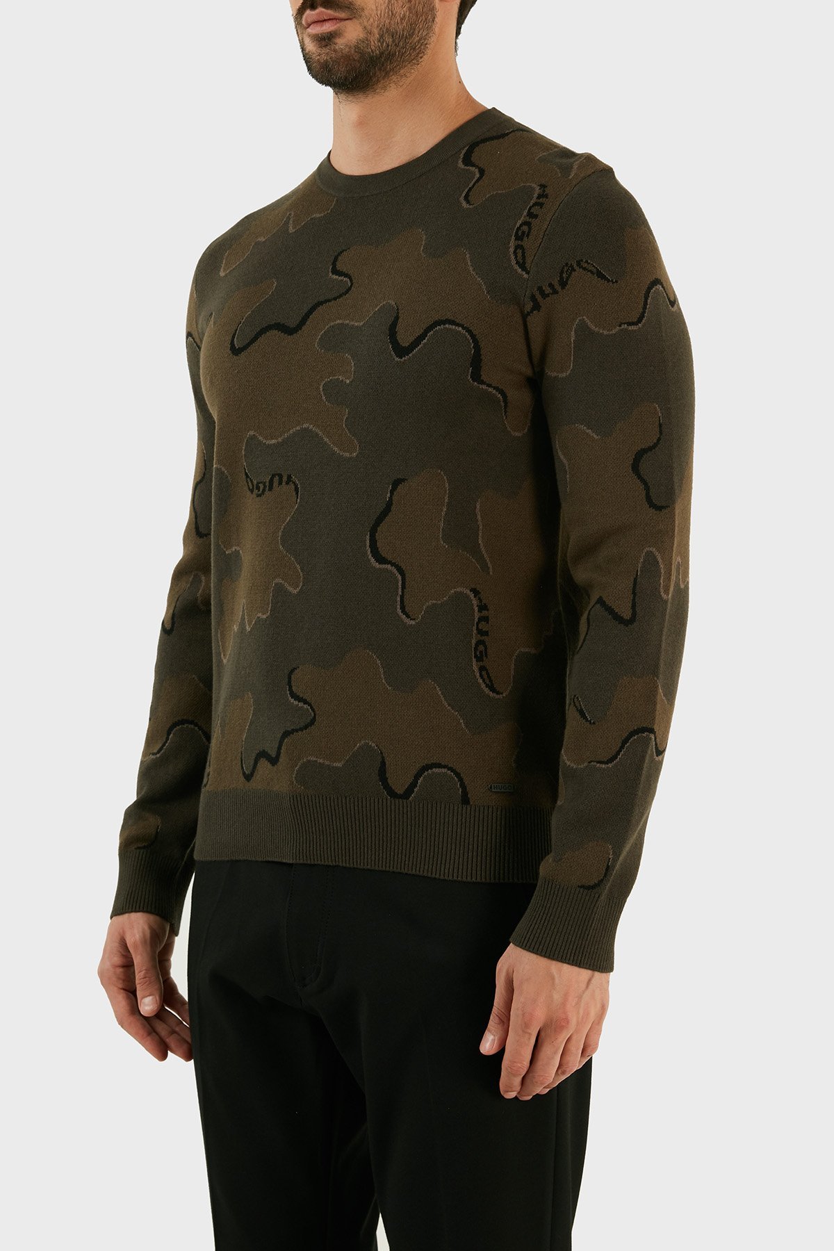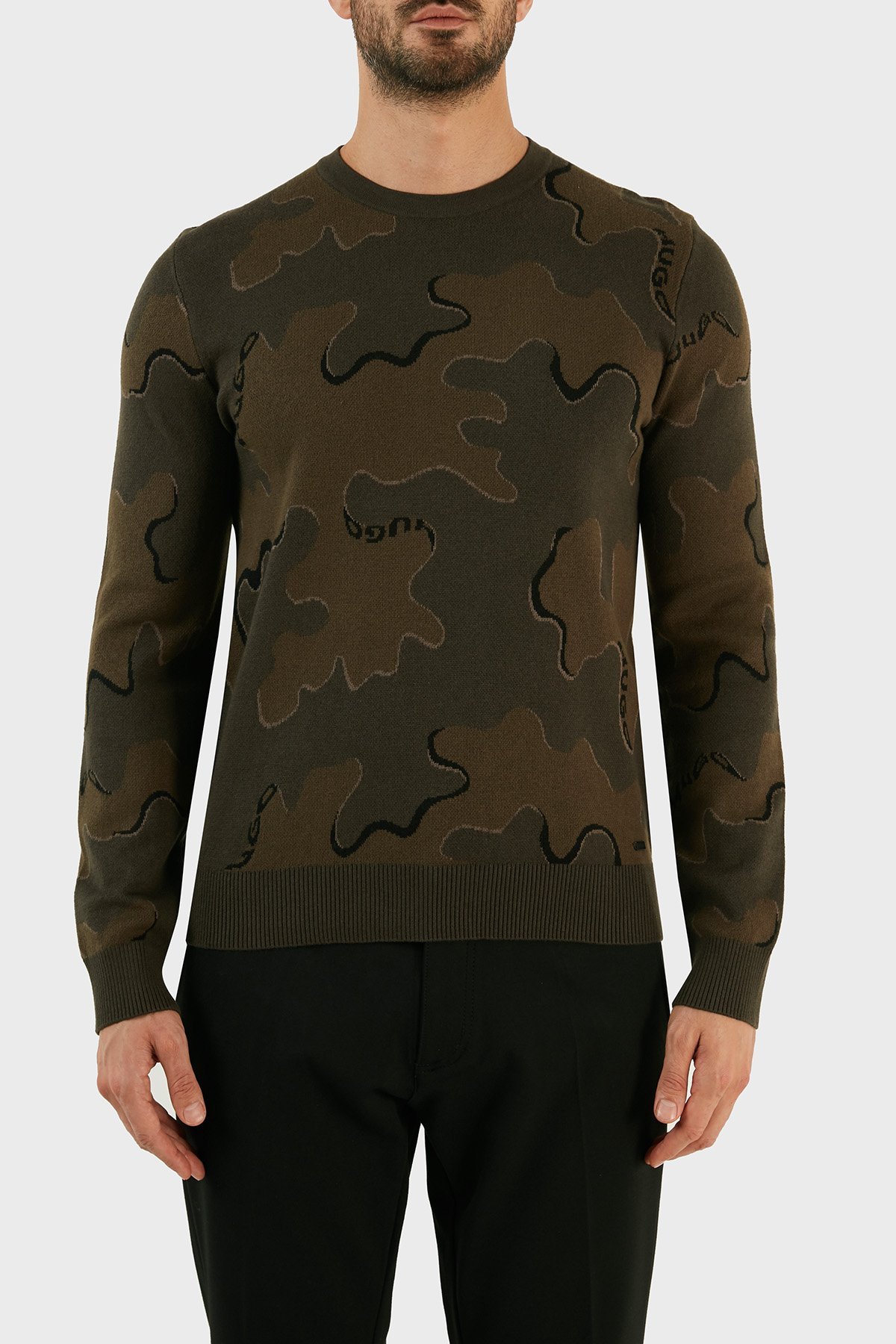 Yün Karışımlı Kamuflaj Desenli Regular Fit Erkek Kazak 50474821 303 HAKİ