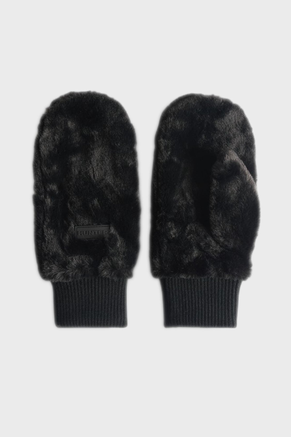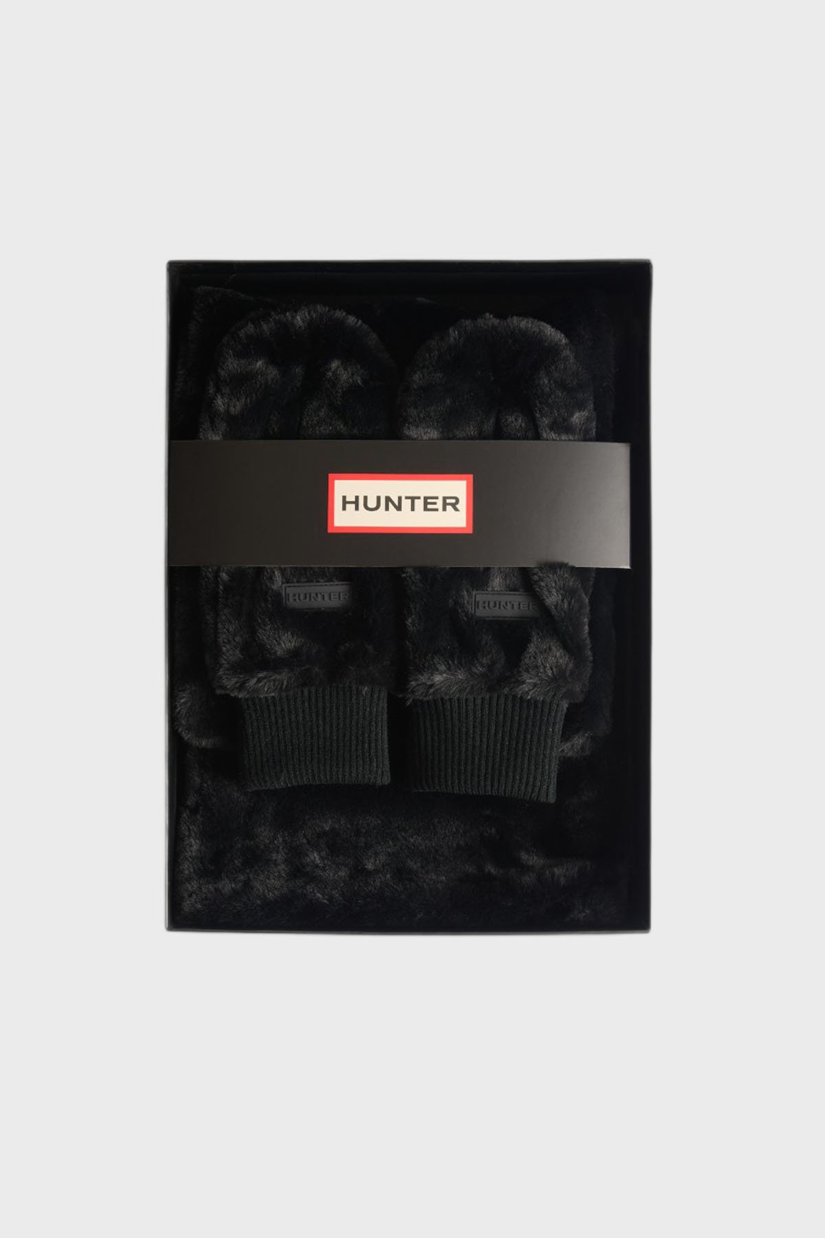 Logolu Peluş Unisex Atkı Eldiven Seti HXRU0027252HB SİYAH