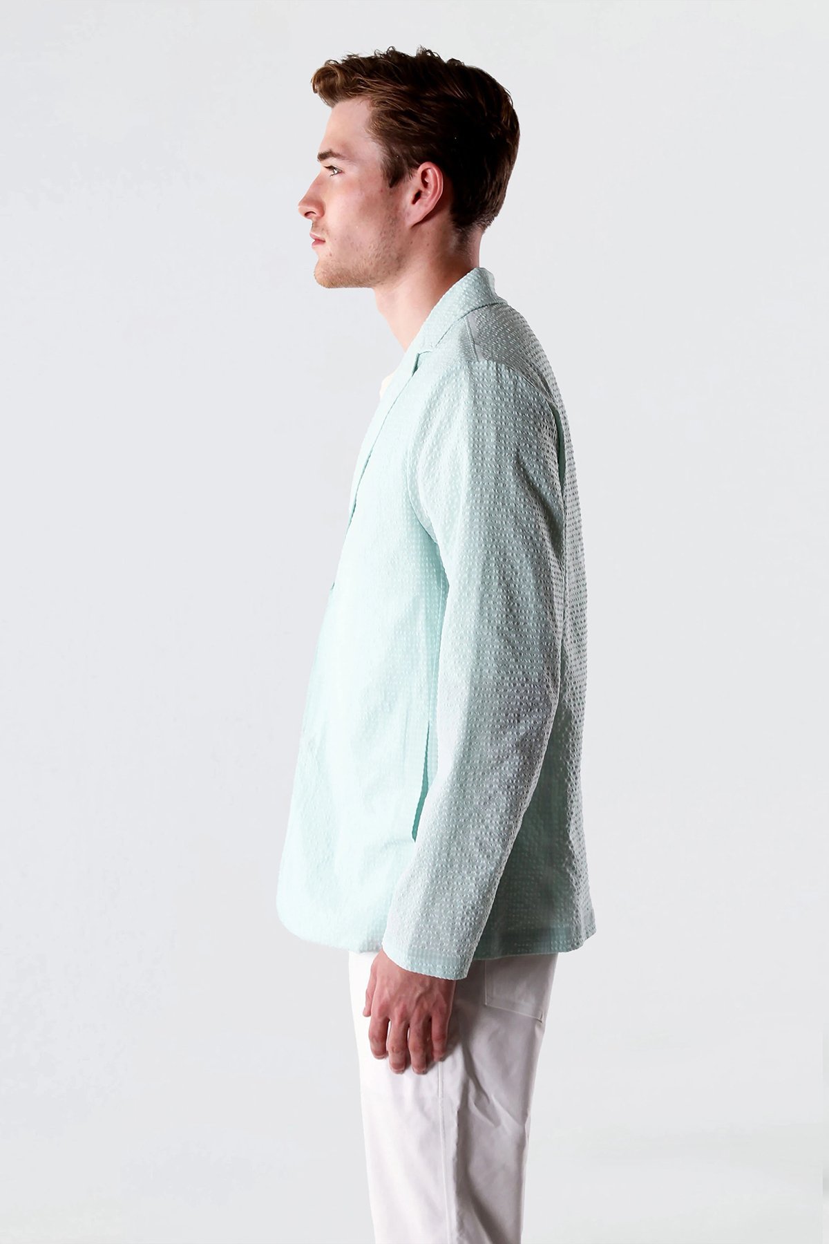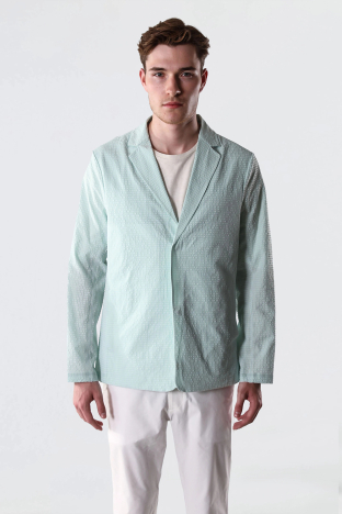 Dokuma Regular Fit Yırtmaçlı Apaş Yaka Blazer Erkek Ceket M24J7023 SPRG YEŞİL