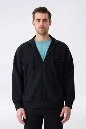 Relaxed Fit Pamuklu Kapüşonlu Fermuarlı Erkek Sweat ISR81140 SİYAH