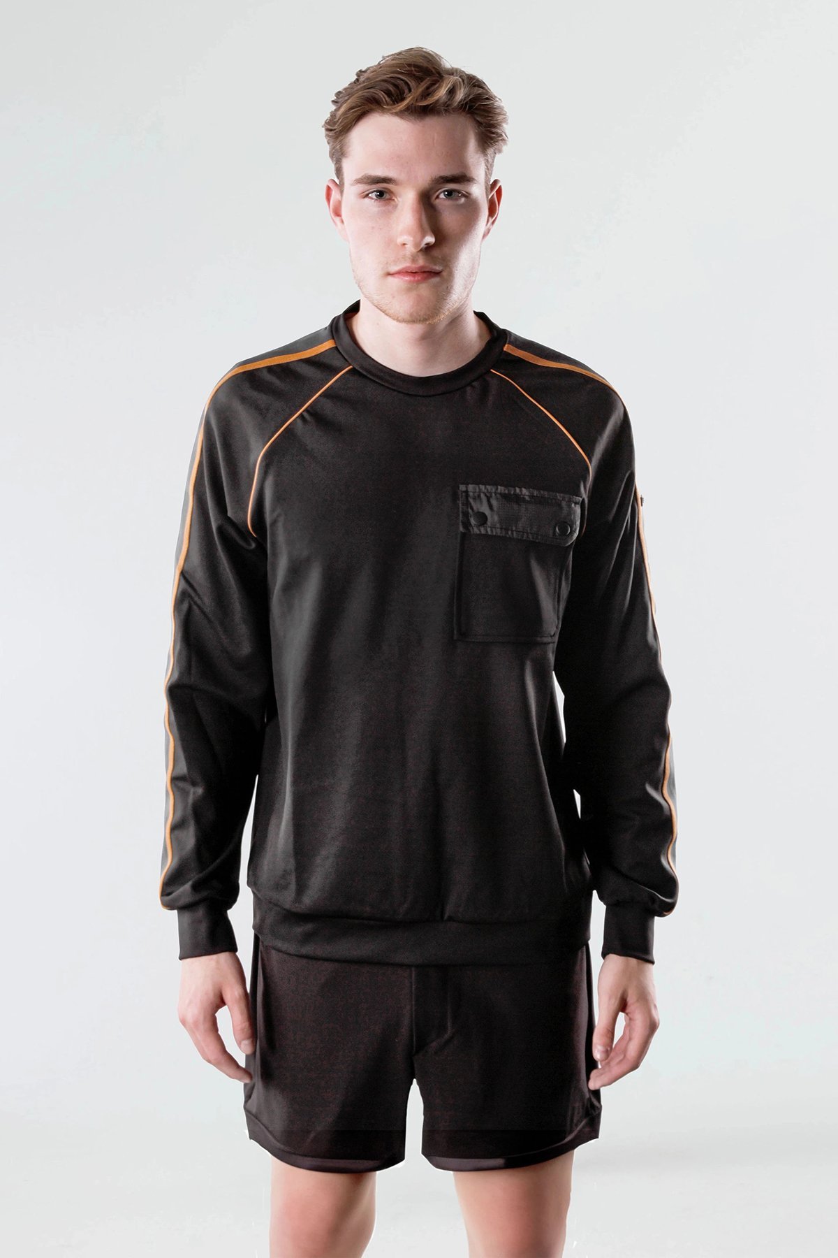 Şerit Detaylı Streç Relaxed Fit Göğüs Cepli Bisiklet Yaka Erkek Sweat M24S8102 888 SİYAH