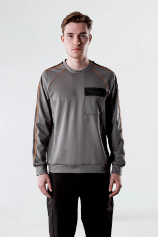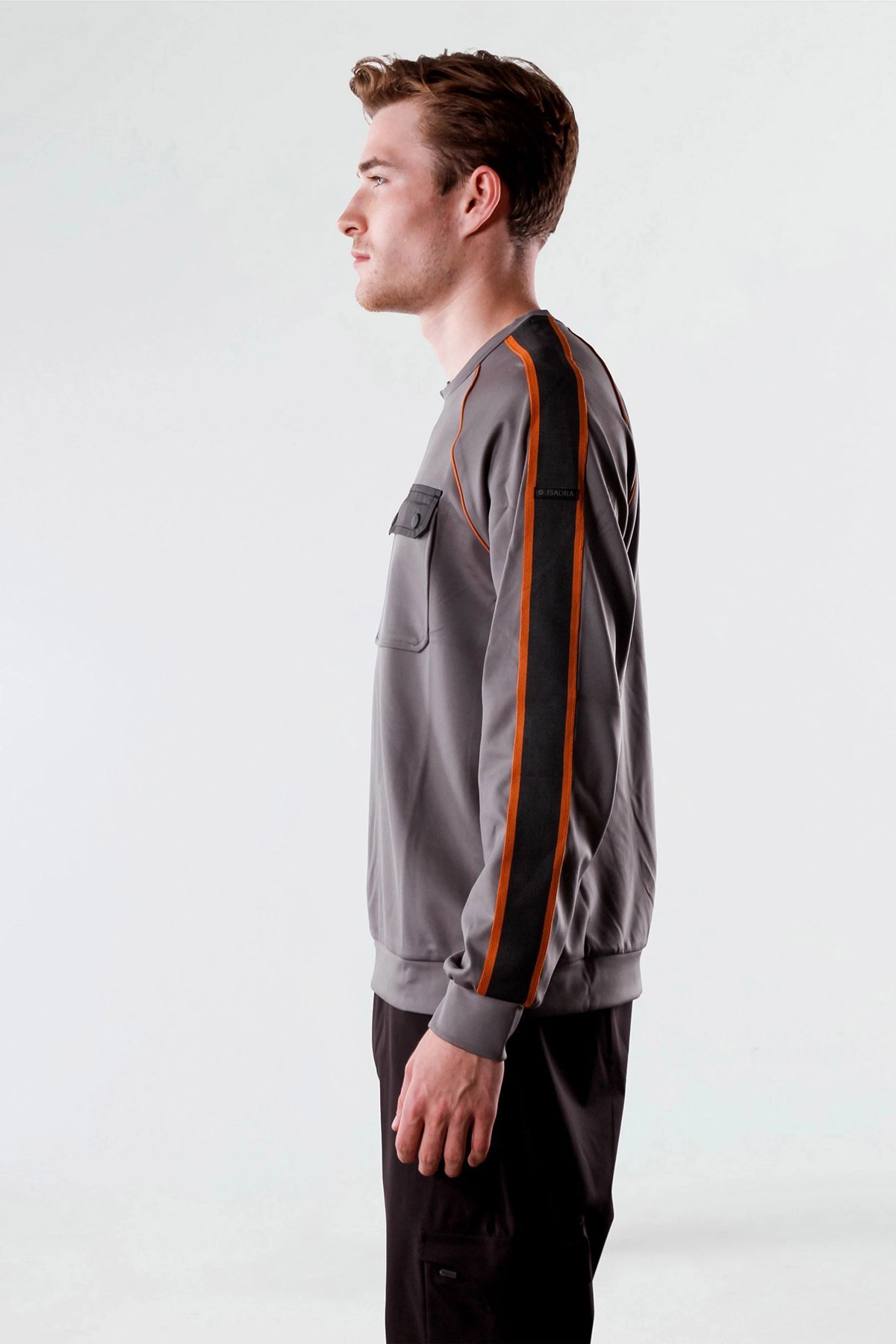 Şerit Detaylı Streç Relaxed Fit Göğüs Cepli Bisiklet Yaka Erkek Sweat M24S8102 NRD GRİ