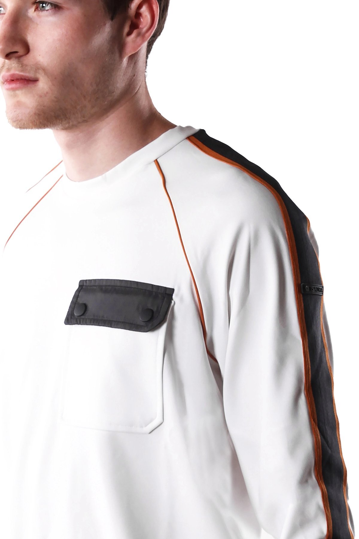 Şerit Detaylı Streç Relaxed Fit Göğüs Cepli Bisiklet Yaka Erkek Sweat M24S8102 SBT BEYAZ