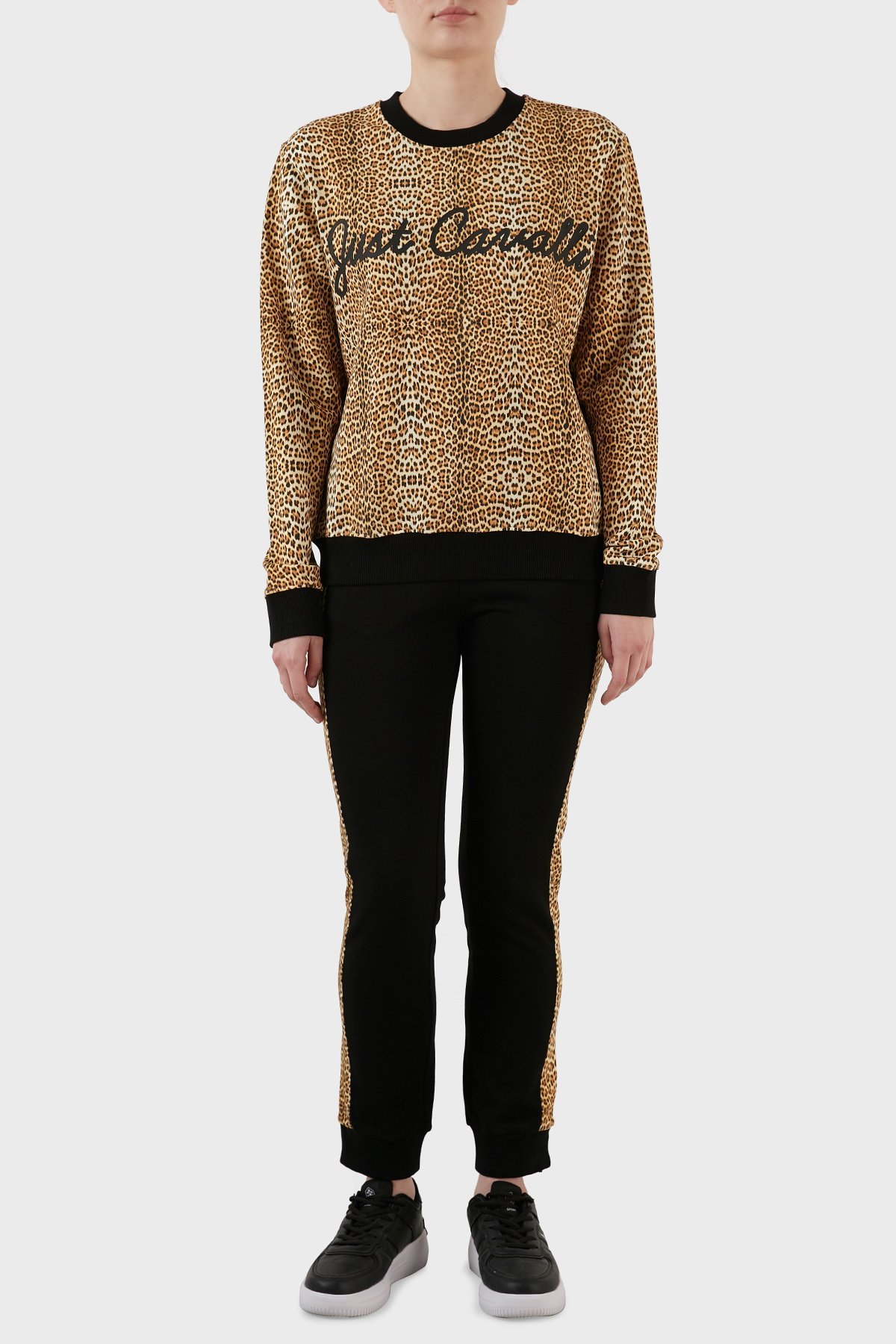 Leopar Desenli Loose Fit Bisiklet Yaka % 100 Pamuk Bayan Sweat S02GU0130 N25224 109S LEOPAR