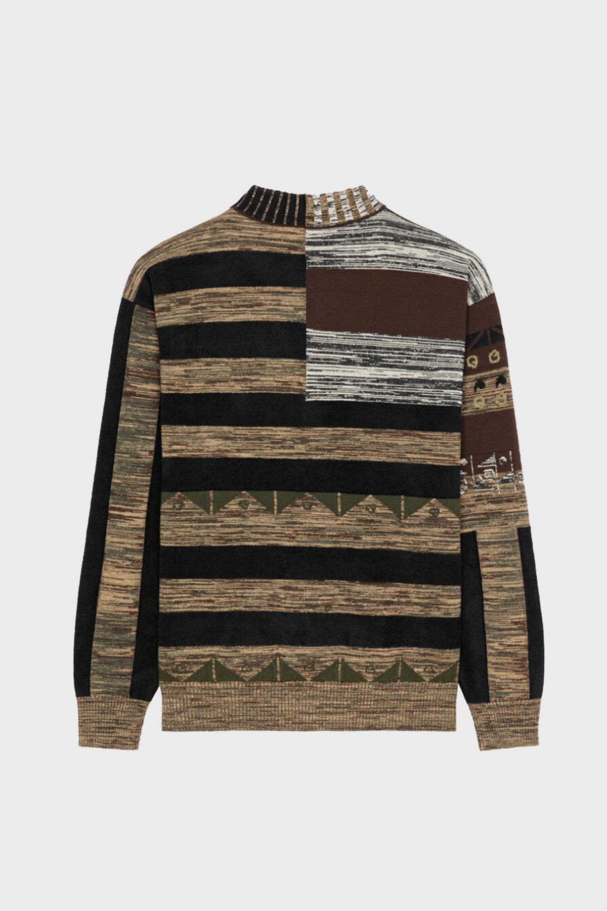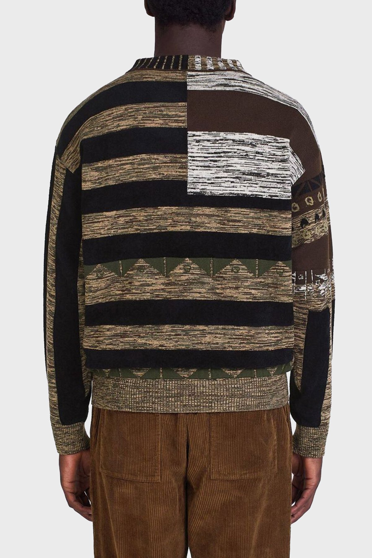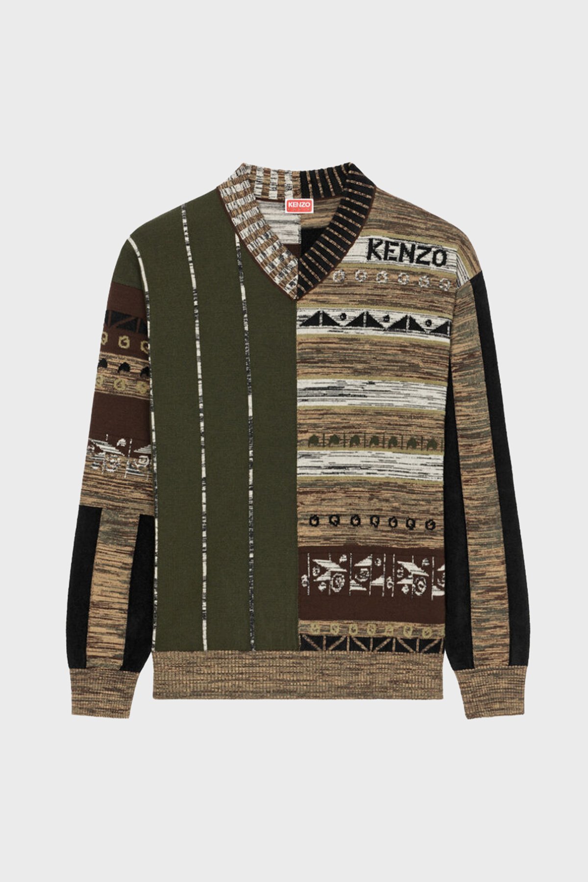 Pamuk ve Yün Karışımlı Desenli Rahat Kesim V Yaka Erkek Kazak FC65PU3193CN51 HAKİ