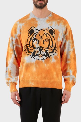 Pamuklu Baskılı Bisiklet Yaka Erkek Kazak FC5 5PU689 3TE 16 GRİ-TURUNCU