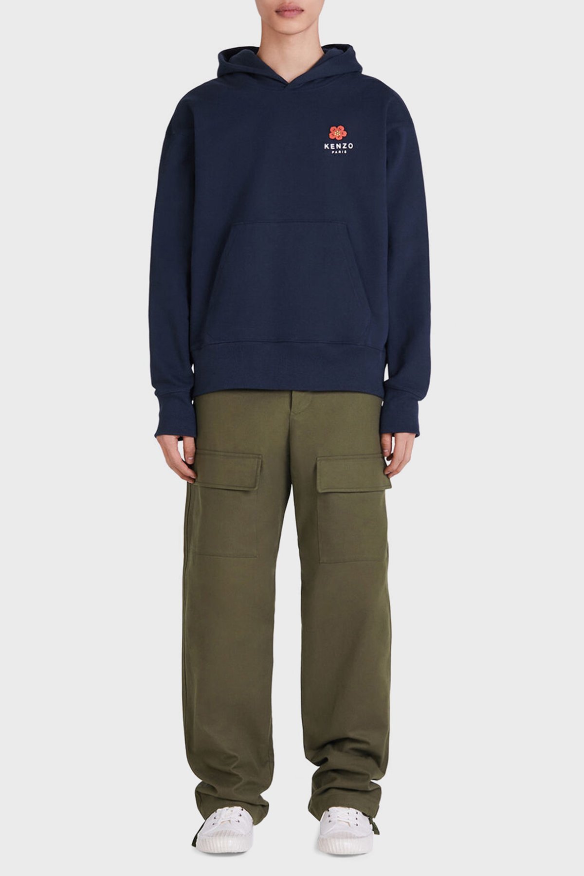 Pamuklu Baskılı Oversize Kapüşonlu Erkek Sweat FC65SW4604ME77 LACİVERT