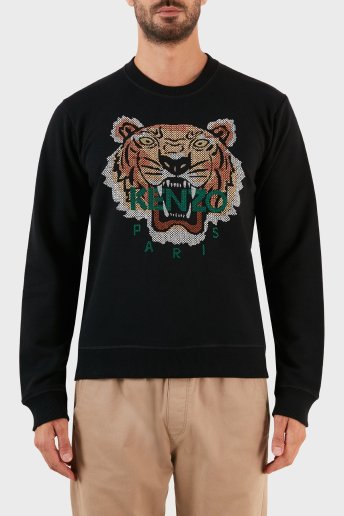 Regular Fit Tiger İşlemeli Bisiklet Yaka % 100 Pamuk Erkek Sweat FC6 5SW140 4XD 99 SİYAH