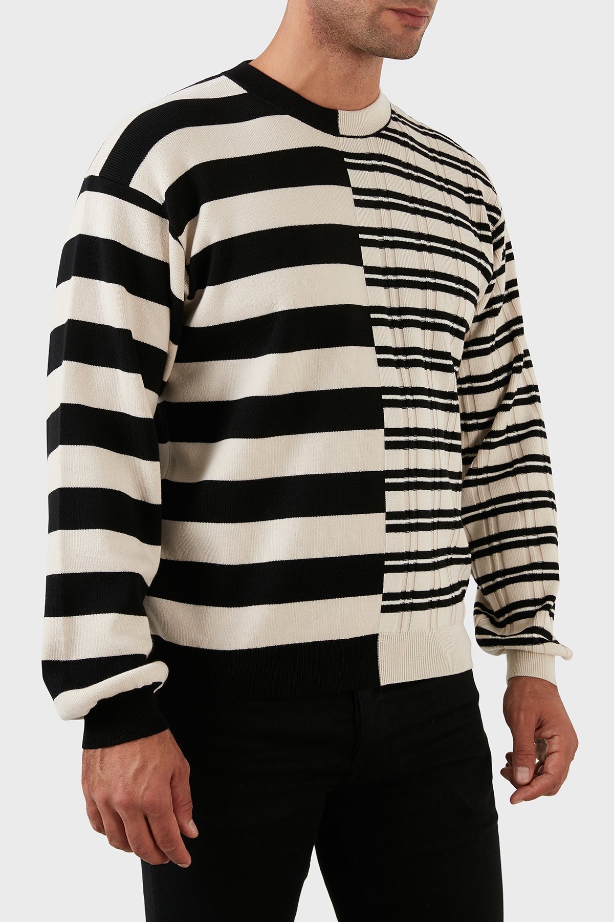 Yünlü Çizgili Regular Fit Sıfır Yaka Erkek Kazak FC65PU3283CK02 BEJ