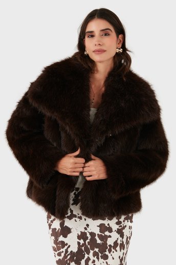 Oversize Geniş Yaka Yumuşak Dokulu Bayan Kürk 68912364942P98 KAHVE
