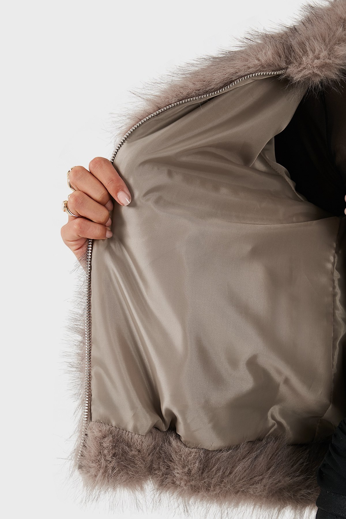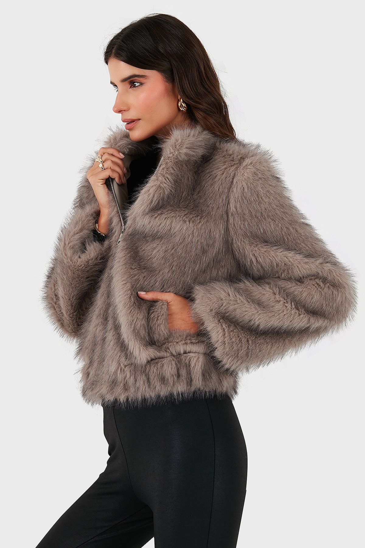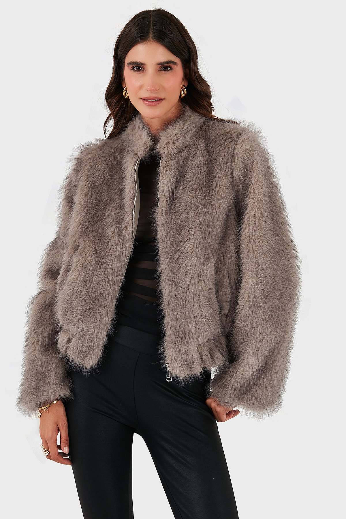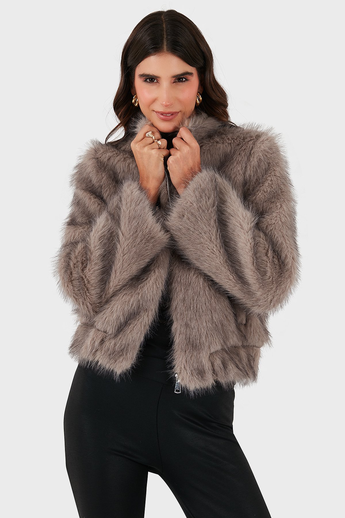 Regular Fit Bisiklet Yaka Fermuarlı Bayan Kürk 68912359939 BEJ